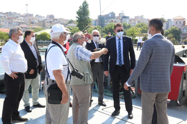 1 TEMMUZ KABOTAJ BAYRAMI DENİZ ŞEHİTLERİ ANISINA ÇELENK BIRAKILARAK KUTLANDI 1 Temmuz Denizcilik ve Kabotaj Bayramı’nın 94. yıldönümü dolayısıyla Bandırma'da denize açılarak deniz şehitleri anısına çelenk bırakıldı. Covid-19 salgını dolayısıyla kısıtlı katılımın gerçekleştiği törene Belediye Başkanı Av. Tolga Tosun, Liman Başkanı Kürşat Ayyıldız, Denizcilik Fakültesi Dekanı Prof. Dr. Mustafa Sarı, Çelebi Liman Müdürü Mehmet Akif Ersoy katıldı. Kutlamalar kapsamında, botla denize açılan sahil güvenlik ekipleri izleyicilere kısa süreli görsel bir şov gerçekleştirdiler. Tören sonunda açıklama yapan Başkan Av. Tolga Tosun: “Kabotaj Bayramımızı düzenlenen törenle kutladık ve deniz şehitlerimizin anısına denize çelenkle birlikte saygı ve minnetimizi sunduk. Bağımsızlığımızın bir göstergesi olan Kabotaj Bayramımız kutlu olsun” dedi.