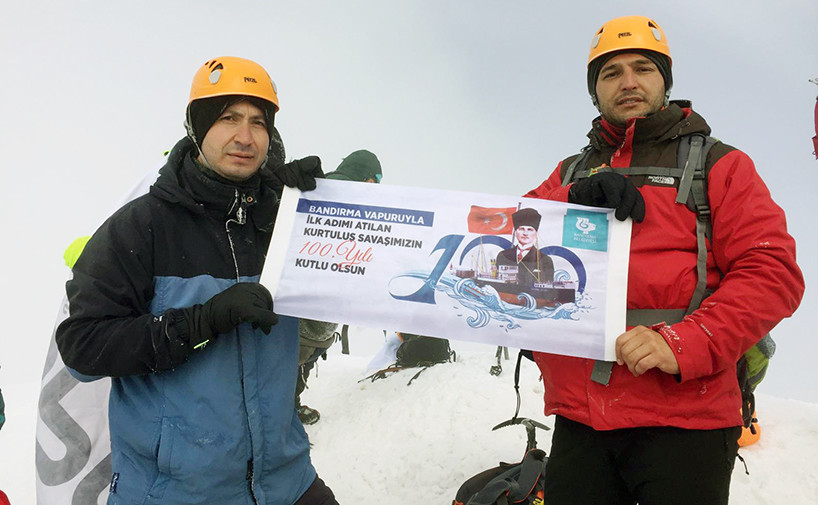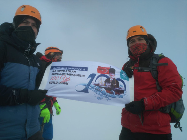 100.YIL COŞKUSU ERCİYES DAĞINDA ZİRVE YAPTI Bu yıl 100. Gurur yılını kutladığımız 19 Mayıs Atatürk’ü Anma, Gençlik ve Spor Bayramı etkinlikleri kapsamında Türkiye Dağcılık Federasyonu tarafından Erciyes Dağı Zirve Tırmanış etkinliği düzenlendi. Etkinliğe Bandırma Belediyesi Dağcılık Topluluğu Üyeleri ve aynı zamanda Belediye personelleri olan Elektrik Etüt Birimi Sorumlusu Cihan Boztunç ve Elektrik-Elektronik Mühendisi Tansel Demirel yer aldı. Federasyon onaylı 25 Dağcının hazır bulunduğu etkinlikte sporcular geceden bölgede kamp attı. 19 Mayıs günü sabahın ilk ışıklarıyla başlayan 3917 metre yürüyüşün ardından zirveye varan sporcular Cumhuriyetimizin Kurucusu Yüce Önder Mustafa Kemal Atatürk, Silah Arkadaşlarını ve Kahraman Şehitlerimiz için saygı duruşunda bulundu ve ardından İstiklal Marşımızı hep bir ağızdan okundu. Saygı duruşu ve İstiklal Marşının okunmasının ardından sporcular günün anısına toplu fotoğraf çekinerek bu anlamlı organizasyonu ölümsüzleştirdiler.