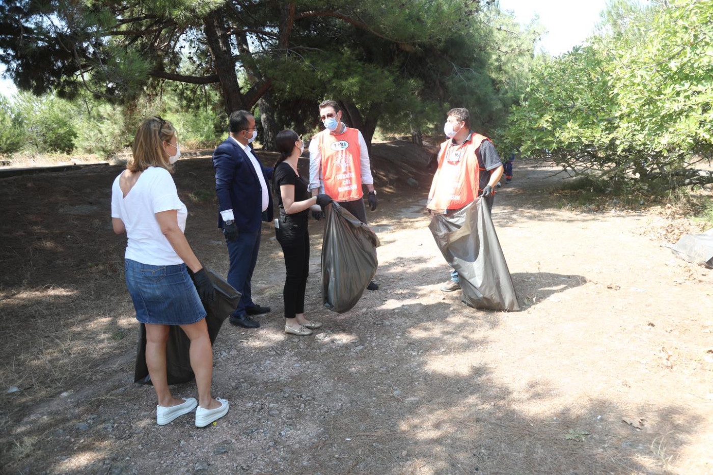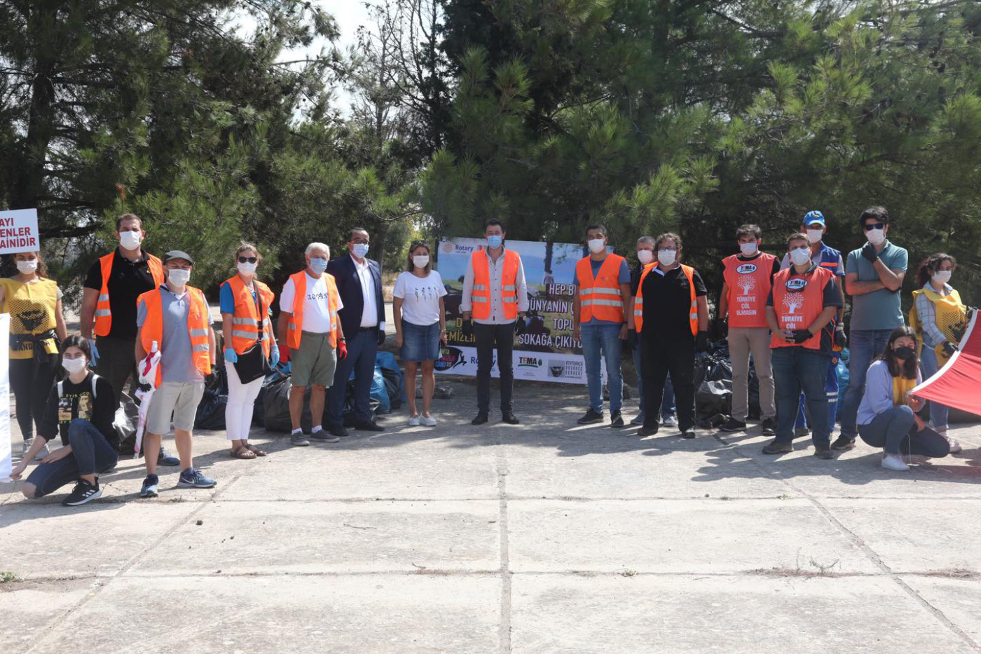 19 EYLÜL DÜNYA TEMİZLİK GÜNÜNDE ANLAMLI ETKİNLİK   Belediye Başkanı Av. Tolga Tolsun, Bandırma Rotary ve Rotaract Kulubü, TEMA Vakfı Bandırma Sorumluluğu ve Atatürkçü Düşünce Derneği’nin 19 Eylül Dünya Temizlik Gününde Eski Askeri Çamlık alanında ortaklaşa düzenlediği “Hep Birlikte Dünyanın Çöpünü Toplamaya Sokağa Çıkıyoruz” etkinliğine katıldı.   Bandırma Belediyesi ekiplerinin de destek verdiği çöp toplama etkinliğinde açıklama yapan Belediye Başkanı Av. Tolga Tosun: “Çevreye ve doğaya karşı duyarlılığı arttırmak için gerçekleştirilen çok güzel bir organizasyon. Buradan vatandaşlarımızı daha duyarlı olmaya davet ediyorum. Çevremizi kirletmeyelim, çöplerimizi, çekirdek kabuklarımızı, sigara izmaritlerini dışarıya atmayalım. Herkes kendi evinin önünü temizler ve çevreye karşı daha duyarlı olursa bütün şehir temiz olur. Belediye ekiplerimizin de destek verdiği çok güzel bir çöp toplama organizasyonu oldu emeği geçen herkese çok teşekkür ediyorum” dedi.
