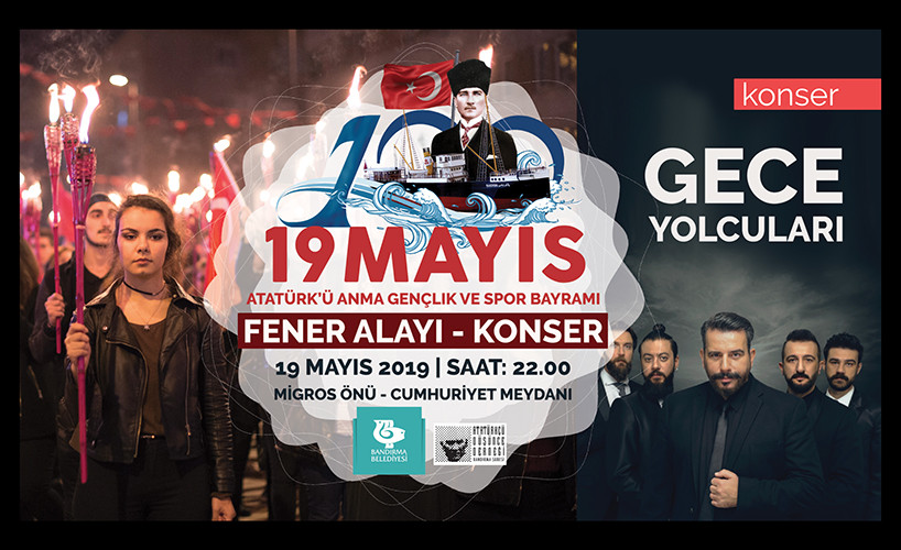 19 MAYIS FENER ALAYI COŞKUSUNA SİZDE KATILIN Bandırma Belediyesi ve Atatürkçü Düşünce Derneği Bandırma Şubesi tarafından 19 Mayıs Atatürk’ü Anma, Gençlik ve Spor Bayramı’nda “Fener Alayı ve Konser” programı düzenlenecek. Ulu Önder Mustafa Kemal Atatürk’ün gençliğe armağan ettiği 19 Mayıs Gençlik Ve Spor Bayramı nedeniyle 19 Mayıs Pazar saat 22.00’de “Fener Alayı” düzenlenecek. Ordu Caddesi Migros Önünün den başlayacak olan kortej yürüyüşü; Cumhuriyet Meydanın da sona erecek. Yürüyüş sonunda Cumhuriyet Meydanında Gece Yolcuları konseri ile program sonlanacak. Bandırma Belediye Başkanı Av. Tolga Tosun; Milli Bayramların önemine dikkat çekerek: “Geçtiğimiz dönemlerde olduğu gibi bu yılda 19 Mayıs coşkusunu hep birlikte kutlayacağız. Ancak benim Bandırmalılardan özel bir isteğim var. Bu yıl daha güçlü bir şekilde katılım sağlamaları. Çünkü birlik ve beraberliğe en çok ihtiyaç duyduğumuz bu günlerde ben bütün gençlerimizden ve vatandaşlarımızdan Fener Alayına coşkulu bir şekilde katılım gerçekleştirmelerini rica ediyorum. Her yıl olduğu gibi Fener Alayımızı Migrosun önünden başlatıp Cumhuriyet Meydanında sonlandıracağız. Fener Alayı sonrasında Gece Yolcuları konseri olacak. Mübarek ramazan ayında kutlayacağımız 19 Mayısta vatandaşlarımız oruçlarını Bandırma Orta Okulu önünde kurduğumuz İftar sofrasında açıp Fener Alayına katılım sağlayabilirler ” dedi.