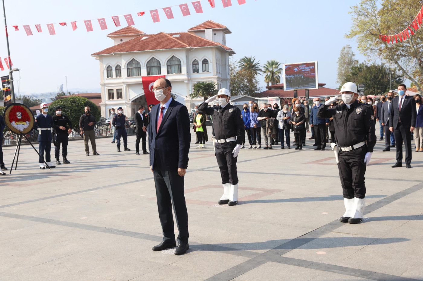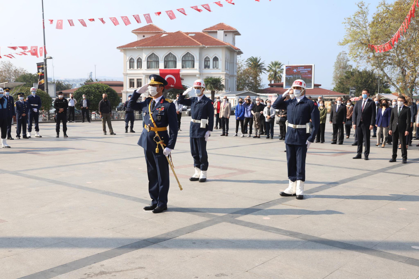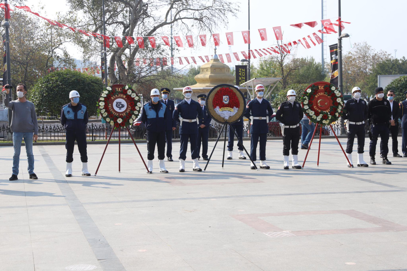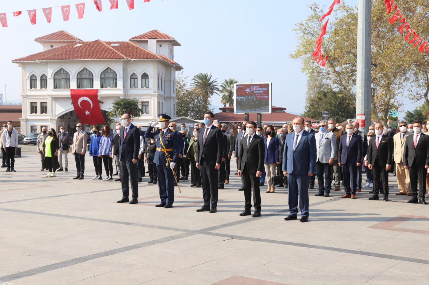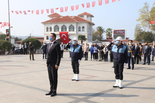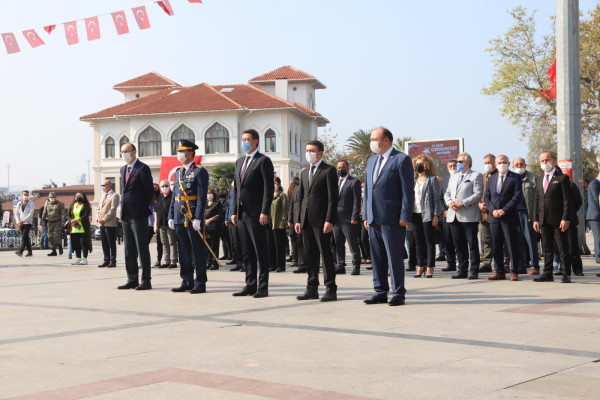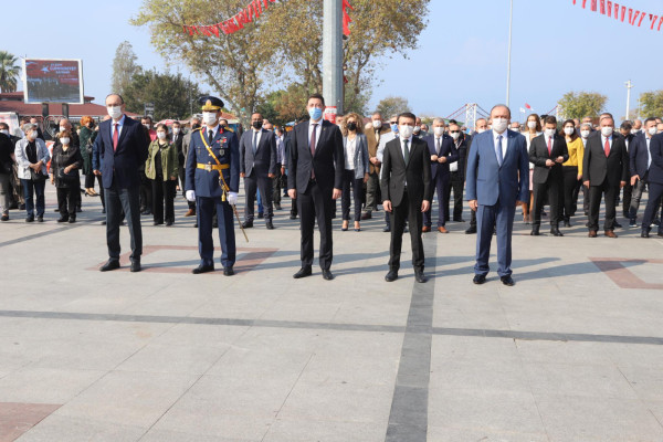 Bu yıl 97. yılı kutlanan 29 Ekim Cumhuriyet Bayramı etkinlikleri kapsamında saat 13.00 da Cumhuriyet Meydanında çelenk koyma töreni yapıldı. Çelenk koyma törenine Kaymakam Günhan Yazar, Garnizon Komutanı Oğuz Okuyucu, Belediye Başkanı Av. Tolga Tosun, Başsavcı Cüneyt Demirdaş, Onyedi Eylül Üniversitesi Rektörü Prof. Dr. Süleyman Özdemir katıldı. Tören saygı duruşu ve İstiklal Marşının okunması ile son buldu.
