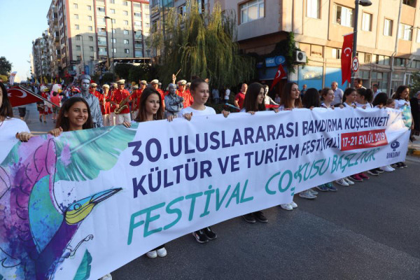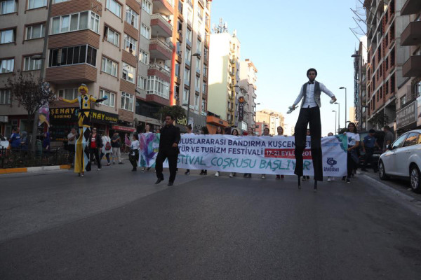 30.FESTİVAL COŞKUSU, KORTEJ YÜRÜYÜŞÜYLE BAŞLADI. Bandırma Belediyesi tarafından bu yıl 30.sunun düzenlendiği Uluslararası Bandırma Kuşcenneti Kültür ve Turizm Festivali'nin açılışı Kortej yürüyüşüyle başladı. Kortej yürüyüşünde Bandırma Kaymakamı Gülhan Yazar, 6.Ana Jet Üssü Komutanı Tuğgeneral Oğuz Okuyucu, Belediye Başkanı Av. Tolga Tosun, Büyükşehir Belediye Başkanı Yücel Yılmaz, Balıkesir Milletvekilleri, protokolün değerli üyeleri ve çok sayıda STK temsilcileri yer aldı. Festival coşkusunun tüm şehre yayıldığı kortej yürüyüşü, Bandırma Belediyesi Kültür ve Sanat Merkezinde sergi açılışlarıyla son buldu.