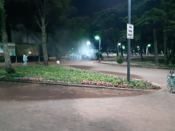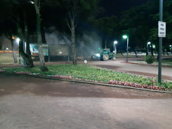 AĞAÇLAR VE YEŞİL ALANLAR İLAÇLANIYOR   Bandırma Belediyesi Park ve Bahçeler Müdürlüğüne bağlı ekipler, ağaçların gelişimini kuvvetlendirip sağlıklı kılmak amacıyla, ağaç ve yeşilliğe zarar veren her türlü haşereye ve hastalığa karşı ilaçlama gerçekleştirdi.   Kentimizin çeşitli yerlerinde bulunan ağaçlar ve süs bitkilerinin üzerinde ilaçlama çalışmalarını sürdüren Park ve Bahçeler ekipleri, ilaçlama çalışmalarının insanlar ve evcil hayvanlar üzerinde herhangi bir yan etkisinin bulunmadığını belirtti. Vatandaşların rahat ve güvenli olmaları için çalışmalarını gece aralıksız devam ettiren ekipler, kentimizde bulunan tüm yeşil alanlarda sürdürüleceğini kaydetti.