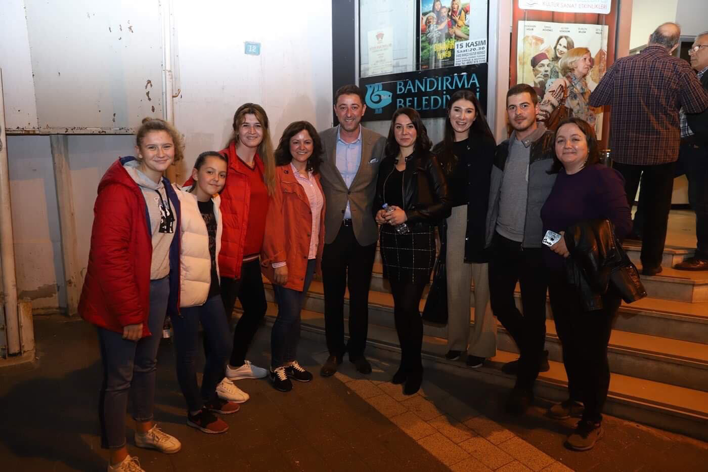 “AŞKIMIZ AKSARAY'IN EN BÜYÜK YANGINI” ADLI TİYATRO OYUNU BEĞENİYLE İZLENDİ Bandırma Belediyesi Kültür ve Sanat etkinlikleri kapsamında sahnelenen, “Aşkımız Aksaray'ın En Büyük Yangını” adlı oyun izleyici ile buluştu. Barış Manço Kültür Merkezinde kapalı gişe sahnelenen oyunda izleyiciler arasında Belediye Başkanı Av. Tolga Tosun ve Bandırma’nın Duayen Belediye Başkanı Sedat Pekel, Eşleri Seda Tosun ve Feride Pekel, ADD Bandırma Şube Başkanı Serdar Polat yer aldı. Bandırmalı sanatseverlerin yoğun ilgisi altında sahnelenen oyun, beğeniyle izlendi. Türk Tiyatro Edebiyatı’nın en önemli/değerli yazarlarından biri olan Güngör Dilmen’in kendine özgü ve sıradışı diliyle yazdığı ve Yönetmen Hakan Altınel tarafından sahnelenen “Aşkımız Aksaray'ın En Büyük Yangını” adlı oyun; 19. yüzyılda İstanbul’un Aksaray semtinde geçen bir aşkın öyküsünü ele alıyor. Oyunun ardından sanatçılara günün anısına teşekkür plaketini ve çiçeğini Belediye Başkanı Av. Tolga Tosun takdim etti. Başkan Tolga Tosun, takdim sırasında Bandırma Belediyesi olarak kültür ve sanatın farklı birçok dalında güzel etkinliklere imza atacaklarını belirterek bundan böyle her ay bir tiyatro oyununu Bandırmalılarla buluşturmayı hedeflediklerini söyledi.