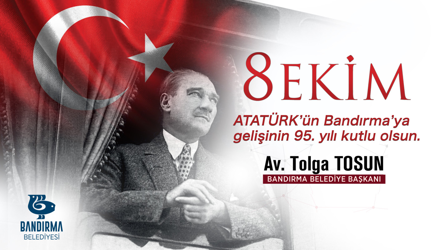 Atatürk’ün Bandırma’ya gelişinin 95.yıldönümü kentimizde bir dizi programla kutlanacak. Hazırlanan kutlama programı kapsamında ilk olarak 8 Ekim Perşembe saat 13:00’da Eski İskele’de Atamızın Bandırmamıza gelişinin Temsili Karşılama Töreni yapılacak. Ardından saat 13:15’te Cumhuriyet Meydanı’nda Atatürk Anıtına Çelenk Sunumu, Saygı Duruşu, İstiklal Marşı ve Belediye Başkanı Av. Tolga Tosun’un Atamızın Bandırmamıza gelişinin 95.yıldönümüyle ilgili konuşması gerçekleşecek.