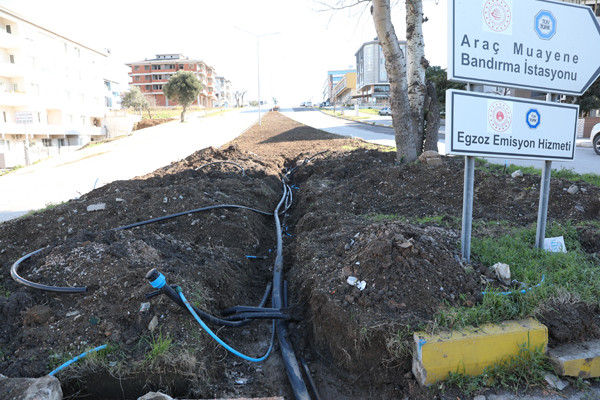 ATATÜRK BULVARI ORTA REFÜJÜNDE SULAMA SİSTEMLERİ’NİN KURULUMU BAŞLADI   Bandırma Belediyesi Park ve Bahçeler Müdürlüğü, Büyükşehir Belediyesi’nin işbirliğiyle Atatürk Bulvarında yenileme çalışmaları devam ediyor.   Özellikle İDO Seferleriyle geçiş güzergahı konumunda olan kentimizin ulaşımında yoğun şekilde kullanılan Atatürk Bulvarı başlayan yenileme çalışmalarıyla kent estetiğine büyük katkı sağlaması amaçlanıyor.   Atatürk Bulvarı orta refüj çalışmalar kapsamında Park ve Bahçeler Müdürlüğü ekipleri otomatik sulama sistemleri tertibatının kurulumuna devam ediyor. Özel hastane önünden TMO önüne kadar sulama sistemlerinin ve alt yapı çalışmalarının tamamlanması ile ekiplerimiz refüjün peyzaj çalışmalarına başlayacaklarını belirtti.
