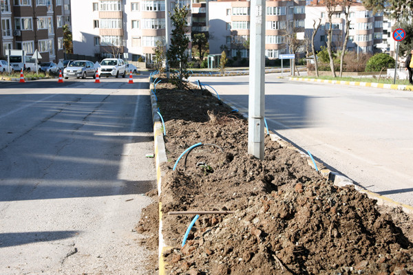 ATATÜRK BULVARI ORTA REFÜJÜNDE SULAMA SİSTEMLERİ’NİN KURULUMU BAŞLADI