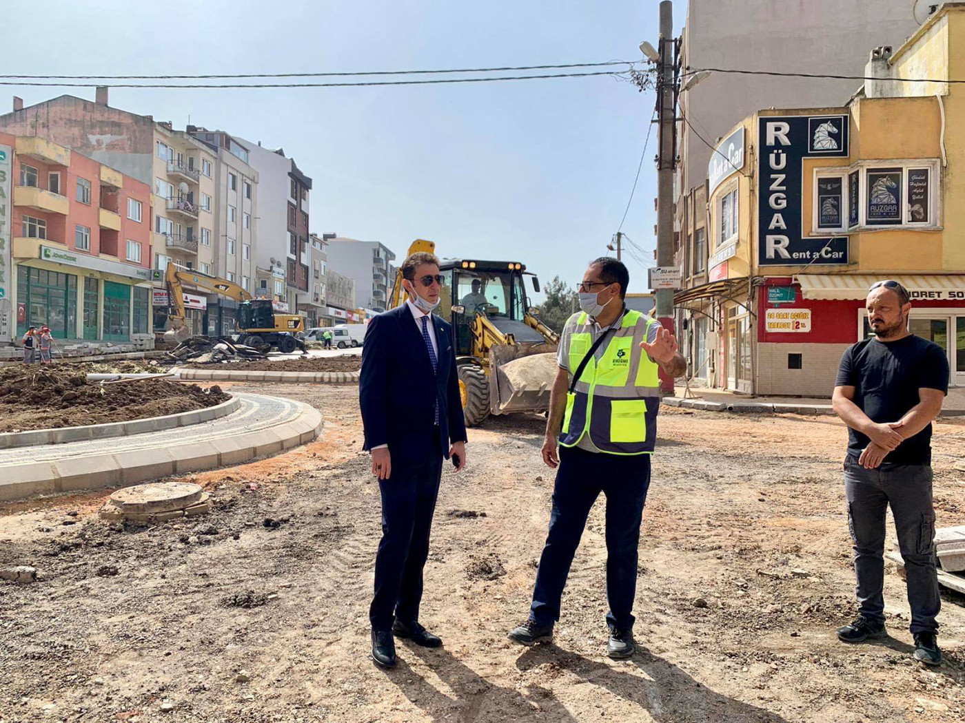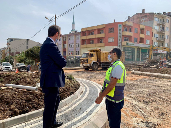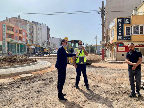 ATATÜRK CADDESİNDEKİ KAVŞAK ÇALIŞMASI HIZ KAZANDI   Belediye Başkanı Av. Tolga Tosun Atatürk Caddesi ile 1. İmar Yolu sokağının kesiştiği noktada gerçekleştirilen kavşak düzenleme çalışmalarını yerinde inceleyerek çalışmalarla ilgili bilgi aldı.   İncelemelerden sonra açıklama yapan Belediye Başkanı Av. Tolga Tosun: “Uzun zamandır kentimiz trafiğinde sorun oluşturan ve kazalara neden olan Atatürk Caddesi’nin 1. İmar Sokakla kesiştiği alandaki kavşak çalışmalarımız devam ediyor. Sokağa çıkma yasağını da kullanarak çalışmalarımıza hız verdiğimiz kavşağımızı mevcut şartlar içinde olabilecek en iyi çözümle vatandaşlarımızı bu alandaki trafik tehlikesinden korumak, sorunu çözmek için çalışıyoruz. Yoğun emeklerini veren emekçi kardeşlerime de teşekkür ediyorum” dedi.