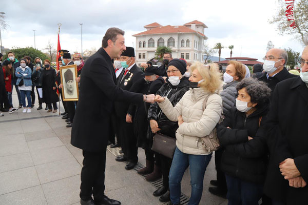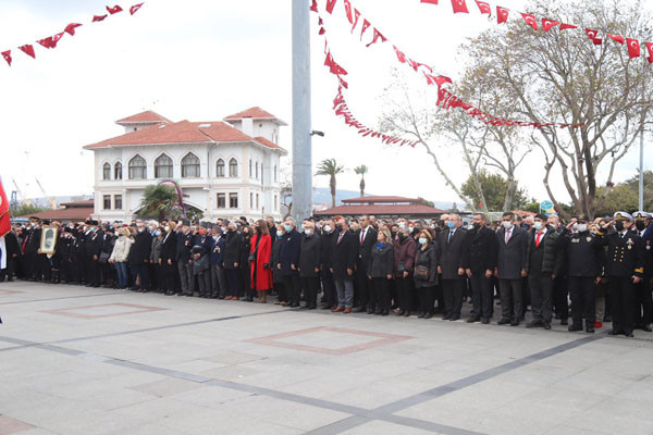 BANDIRMA ATA’SINI UNUTMADI Gazi Mustafa Kemal Atatürk 83. Ölüm yıldönümünde düzenlenen tören ve programla anıldı. Cumhuriyet Meydanında gerçekleştirilen etkinliğe Kaymakam Engin Aksakal, Garnizon Komutanı Tuğgeneral Hv. Plt. Selahattin Akalp, Belediye Başkanı Tolga Tosun, Cumhuriyet Başsavcısı Cüneyt Demirdaş, Onyedi Eylül Üniversite Rektörü Prof. Dr. Süleyman Özdemir, Belediye Meclis üyeleri, siyasi parti temsilcileri, gaziler ve vatandaşlar katıldı.   Tören Atatürk Anıtına çelenklerin konulması ile başladı. Saat 09.05’de sirenlerin çalmasıyla 2 dakikalık saygı duruşunun yapılmasının ardından İstiklal Marşının okunması ile devam etti. Doç. Dr. Resul Yavuz Atatürk’ü anlatan konuşması yapmasının ardından şiir okunması ile tören son buldu. Resmi törenin ardından Barış Manço Kültür Merkezinde Haydar Çavuş Mesleki ve Teknik Anadolu Lisesinin hazırladığı etkinlik gerçekleşti.