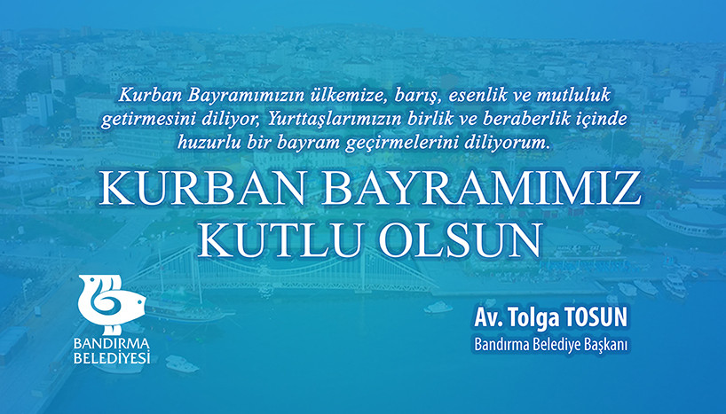 BANDIRMA BELEDİYE BAŞKANI AVUKAT TOLGA TOSUN’UN KURBAN BAYRAMI KUTLAMA MESAJI   Sevgili Bandırmalılar, kıymetli hemşerilerim. Bayramlar küslük ve dargınlıkları sonlandırmaya, hasret ve sevinçle kucaklaşmaya, kardeşçe paylaşmaya, mutluluk ve huzurla gülümsemeye vesile çok özel günlerdir. Böyle günlerde komşuluğun, dostluğun, aile olmanın önemi bir kez daha artar. Bizler büyük Bandırma ailesiyiz ve çok şükür bir Kurban Bayramı’na daha erişmiş bulunuyoruz.   Hizmet etmekten onur duyduğum Bandırma’da, bayramımızın huzurla geçmesi için özverili çalışmalarımıza devam etmekteyiz. Kurban satış ve kesim alanımızda, sizlere en iyi hizmeti verebilmek adına çalışmalarımızı tamamladık. İlgili birimlerimiz, Bandırma’nın tamamında gıda üretim ve satış alanlarında sağlık ve hijyen denetimlerine titizlikle devam ediyor. Asfalt üretim tesisimizde uzun süren arızanın giderilmesi sonrasında, hemen plan ve acil ihtiyaçlar dahilinde yol yapım ve tamir çalışmalarımıza başlamıştık. Bayram sonrasında da, hız kesmeden ulaşım konusunda kendi bünyemiz ve diğer kurumlarla koordineli olarak çalışmaya devam edeceğiz.    Biz Bandırma Belediyesi olarak sorumluluğumuzun bilincindeyiz. Geleceğimiz için, zengin ve yaşamaktan mutlu olduğumuz bir Bandırma için ne gerekiyorsa yapacağız. Siz değerli hemşerilerimden de yaptığımız hizmetlere sahip çıkmanızı bekliyorum.   Sevgili ailem, Kurban Bayramınızı en içten dileklerimle kutluyorum. Sevdiklerinizle sağlıklı, huzurlu, mutlu, bereket dolu nice bayramlar diliyorum.