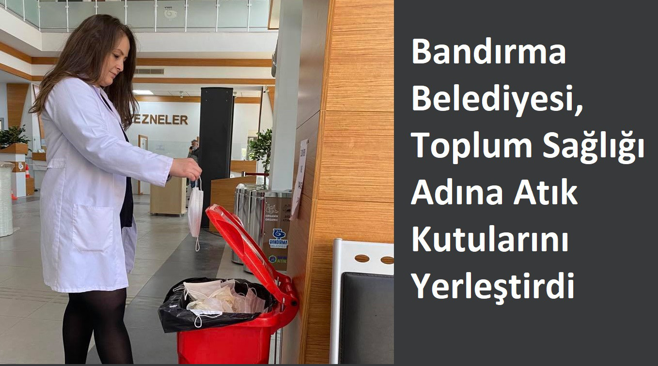 Bandırma Belediyesi çevre sağlığı adına yeni bir uygulamayı daha hizmete aldı. Ekipler kullanılmış maske ve eldivenlerin gelişi güzel atılmasını engellemek amacıyla farklı noktalara atık kutuları yerleştirdi. Kişisel hijyen, maske ve eldiven takmanın salgının yayılmasının önüne geçmek adına dikkat edilmesi gereken çok önemli bir unsurlardan olduğu kaydedilirken diğer yandan kullanılmış ve atık hale gelen maske ve eldivenler salgının yayılmasında büyük risk oluşturmakta. Bu nedenle Bandırma Belediyesi toplum ve çevre sağlığı adına kentimizde Belediye Hizmet Binası, Kaymakamlık, Kapalı Pazar Yeri, Çarşı Zabıta Merkez noktası gibi alanlarda atık kutusu koyarak kullanılmış olan maske ve eldivenlerin bu noktalarda toplanmasını sağlayıp risk oluşturmanın da önüne geçmeyi amaçlıyor.