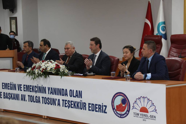 Bandırma Belediyesi ile belediye çalışanı 160 memur adına Tüm Yerel Yönetim Çalışanları Sendikası (Tüm-Yerel-Sen) sosyal denge sözleşmesi imzalandı. İmza töreni Bandırma Belediyesi Meclis Salonunda gerçekleşti. Törene; Bandırma Belediye Başkanı Av. Tolga Tosun, Başkan Yardımcıları Ozan Onur, İsmail Ay ve Metin Ok, Tüm-Yerel-Sen Genel Başkanı Arap Mucur, Bandırma Şube Başkanı Sezer Yıldız, sendika üyeleri, Bandırma Belediyesi daire amirleri ve çalışanlar katıldı. 1 Ocak 2022’den itibaren geçerli olacak olan, sosyal denge sözleşmesi imza töreninde konuşan Belediye Başkanı Av. Tolga Tosun: “Yaklaşık iki yıldır pandemi ile mücadele ediyoruz. Bu dönemde çalışanlarımıza daha fazla sorumluluk yüklendi. Çok emek harcadık. Zor zamanlar geçirdik. Mesai saatlerimiz değişti. Ama buna rağmen hem belediyecilik adına hem de halkımıza yardımların ulaştırılması adına önemli işler yaptık. Verdiğimiz tüm sözler, vaat ettiğimiz tüm projeler birer birer gerçekleşiyor. Belediyemiz sizler sayesinde güçlü bir belediye oldu. Emekleriniz için teşekkür ediyorum. Yaşanan ekonomik kriz sonrasında temel gıda maddelerinin fiyatlarında maalesef ciddi şekilde artış oldu. Hepimizin gelirleri azaldı. Bandırma Belediyesi olarak elbette çalışanlarımıza sahip çıkmamız gerekiyor. Bandırma Belediyesi 750-800 personeli ile 200 bin nüfusa hizmet veriyor. Bu hizmeti sunabilmek için de hizmet veren çalışanlarımızın mali açıdan sıkıntı yaşamamaları, daha iyi şartlarda çalışmaları gerekir. Devletin açıkladığı memur zammına karşılık kanun, belediye başkanlarına en çok %20 ek olarak zam yapabilme yetkisi veriyor. Bandırma Belediyesi olarak bu düşünce ile masaya oturduk ve memurlarımıza en üst seviyeden, yani ek olarak %20 zam yaptık. Bu sözleşme; Belediyemize, Bandırmamıza, size ve ailenize, hepimize hayırlı olsun” dedi.