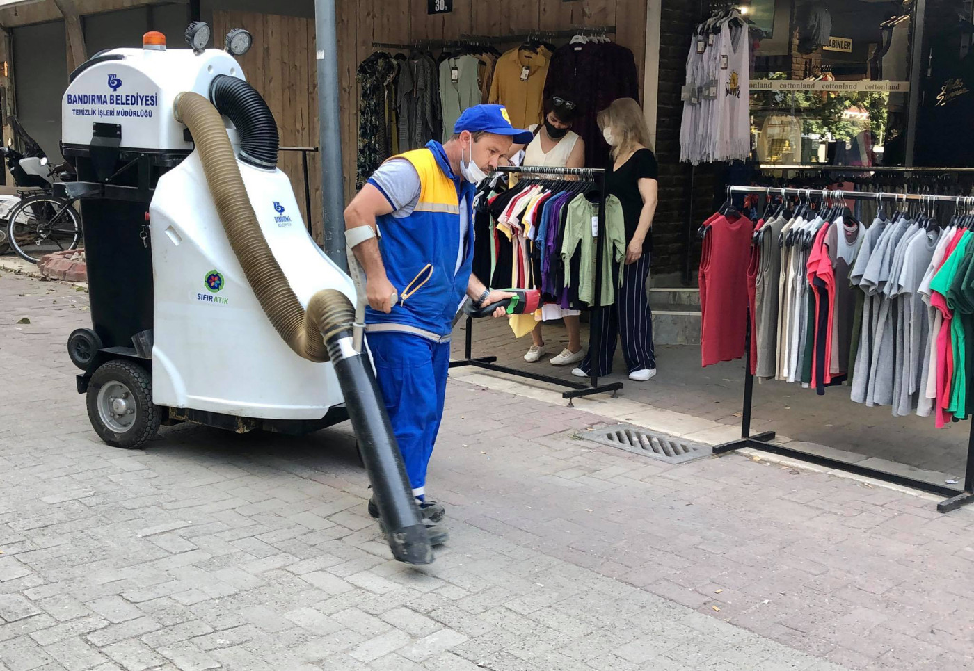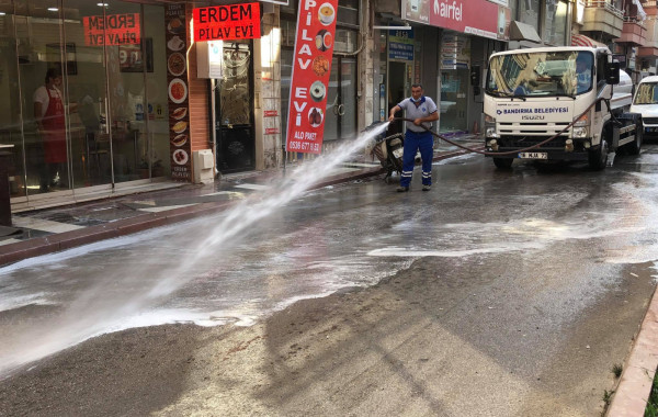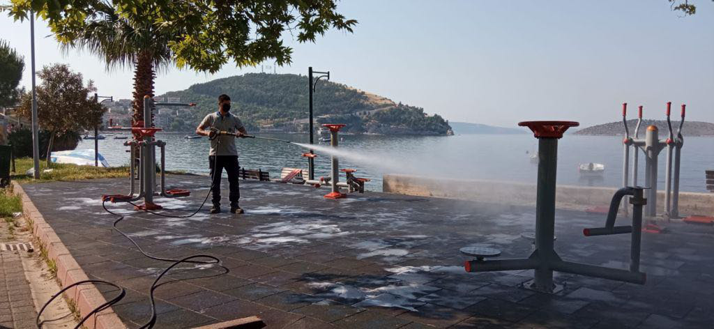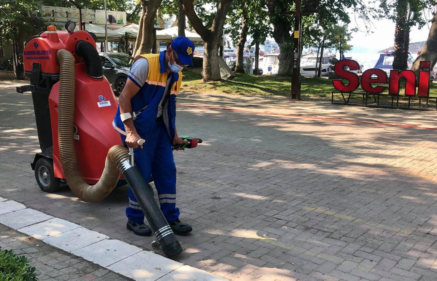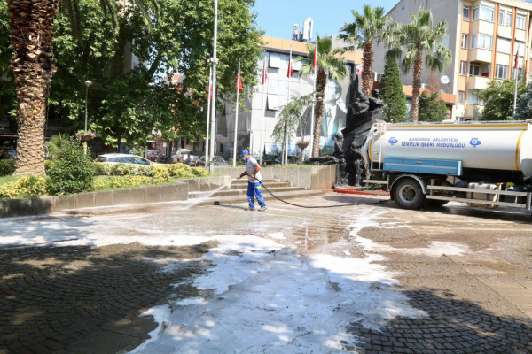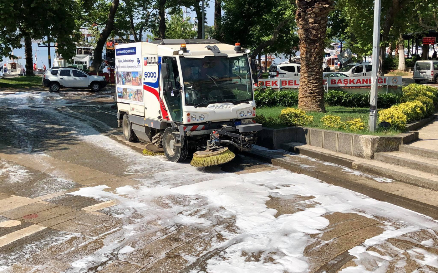 BANDIRMA BELEDİYESİ’NDEN ERDEK’E TEMİZLİK DESTEĞİ   Bandırma Belediyesi, yaz dönemi nedeniyle turizm yoğunluğunun arttığı Erdek’te temizlik çalışmalarına destek verdi. Ekiplerin yerine getirdiği çalışmalar kapsamında Erdek’in dört bir tarafı Bandırma Belediyesi temizlik ekipleri tarafından köşe bucak temizlendi.   Yapılan temizlik çalışmalarında Erdek’in tüm ana caddeleri, sahil boyunun tamamı, Belediye Meydanı, Anıtlar ve çocuk parkları önce süpürge araçlarıyla temizlendi. Ardından da köpüklü dezenfektanla tüm bu alanlar yıkanarak temiz bir hale getirildi.