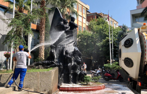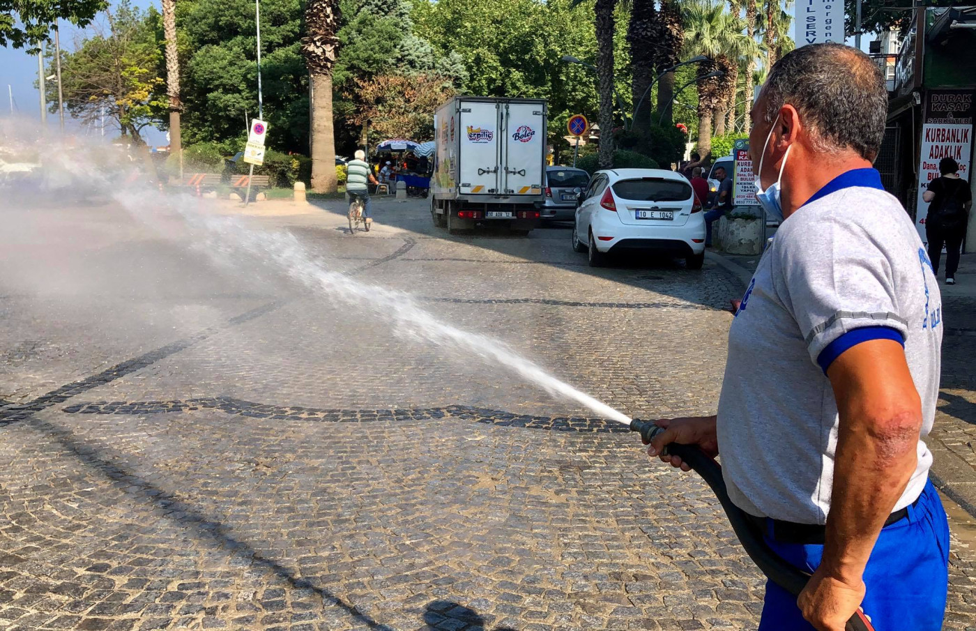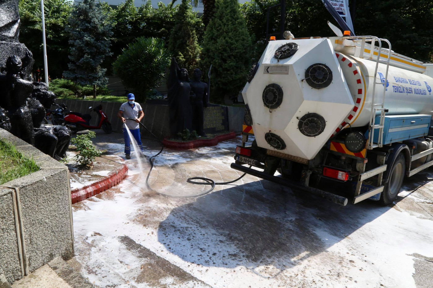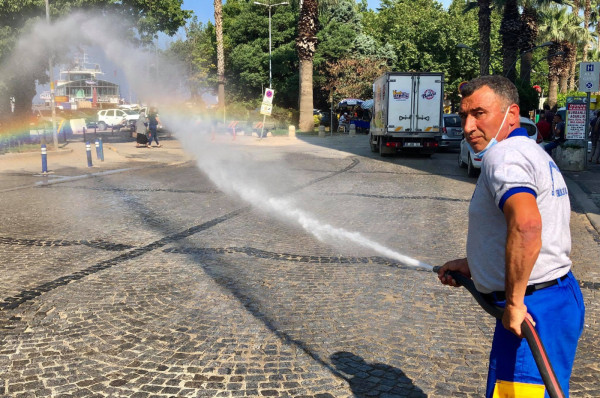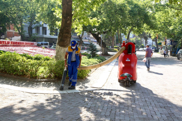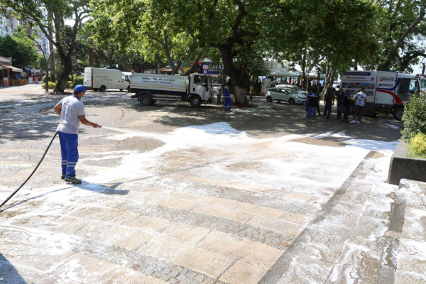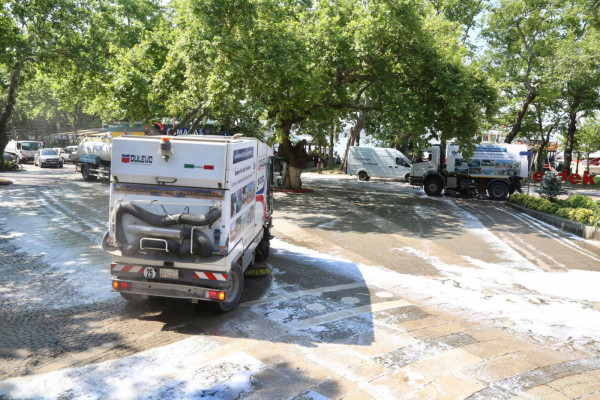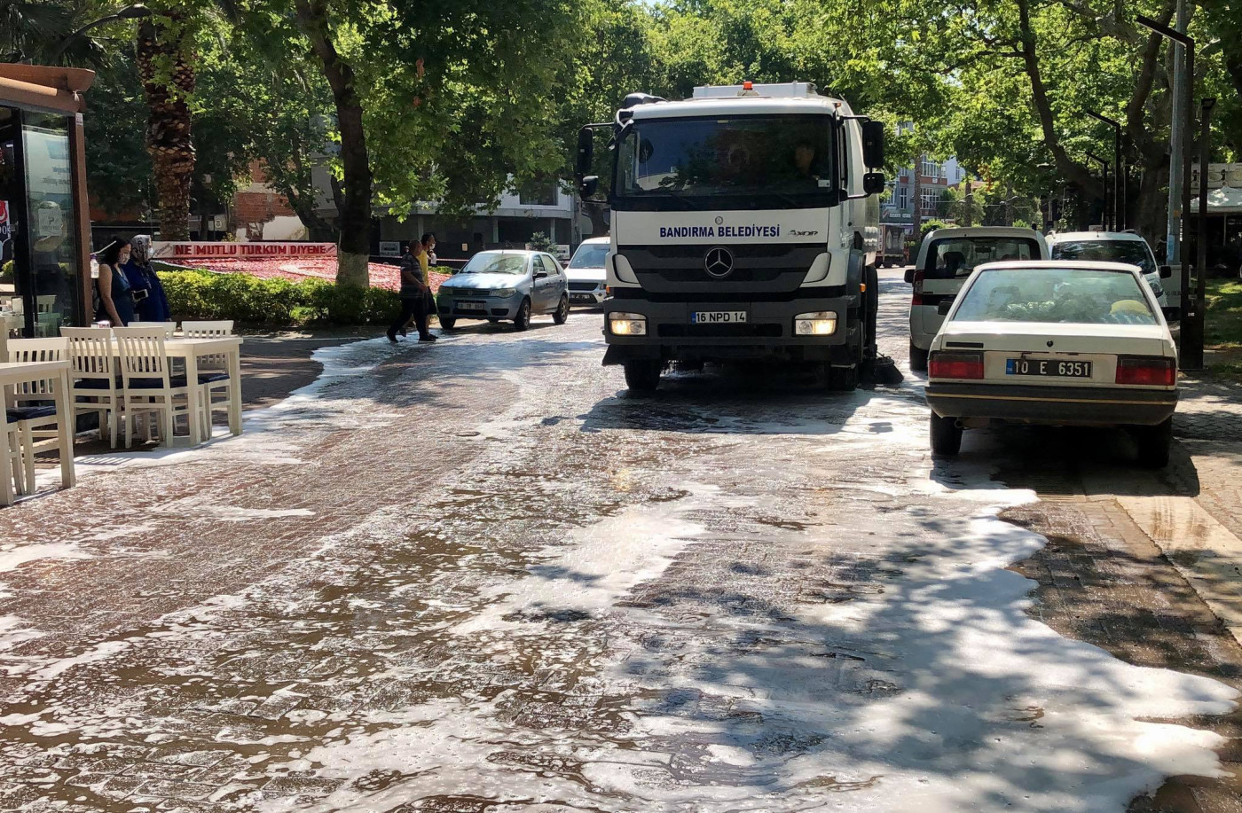 BANDIRMA BELEDİYESİ’NDEN ERDEK’E TEMİZLİK DESTEĞİ   Bandırma Belediyesi, yaz dönemi nedeniyle turizm yoğunluğunun arttığı Erdek’te temizlik çalışmalarına destek verdi. Ekiplerin yerine getirdiği çalışmalar kapsamında Erdek’in dört bir tarafı Bandırma Belediyesi temizlik ekipleri tarafından köşe bucak temizlendi.   Yapılan temizlik çalışmalarında Erdek’in tüm ana caddeleri, sahil boyunun tamamı, Belediye Meydanı, Anıtlar ve çocuk parkları önce süpürge araçlarıyla temizlendi. Ardından da köpüklü dezenfektanla tüm bu alanlar yıkanarak temiz bir hale getirildi.