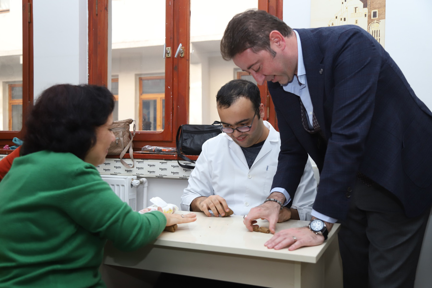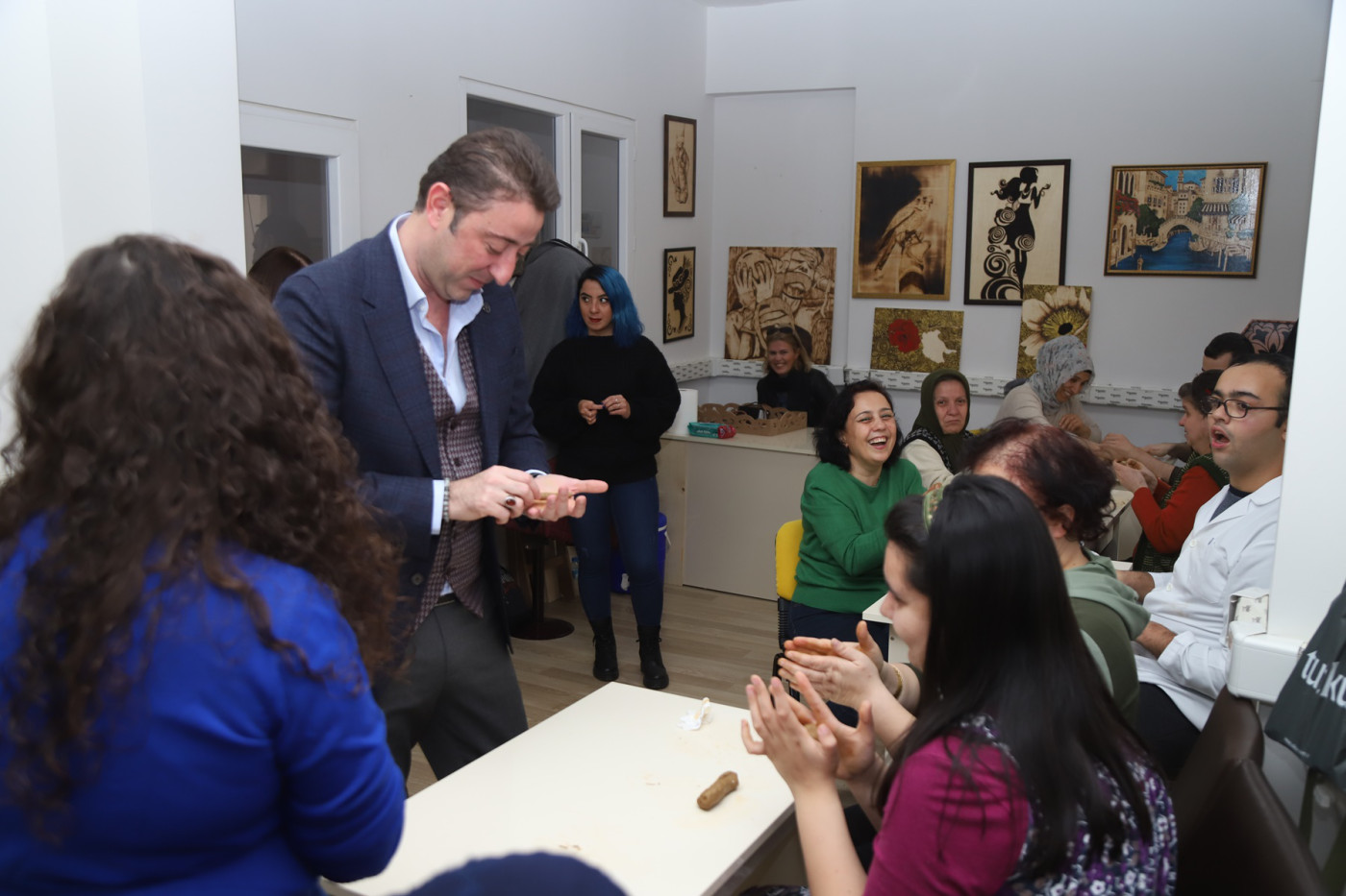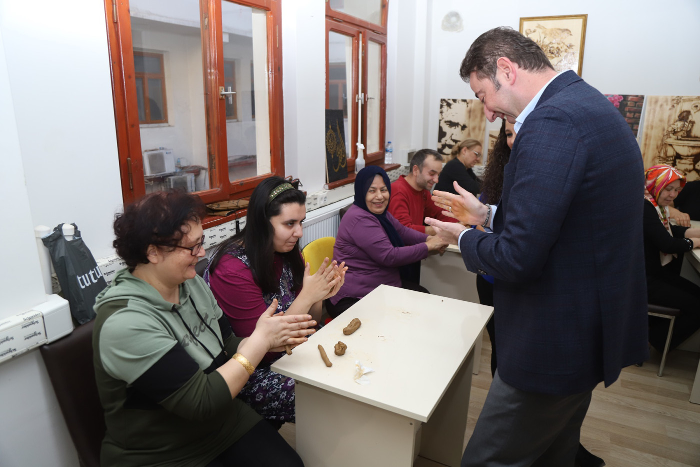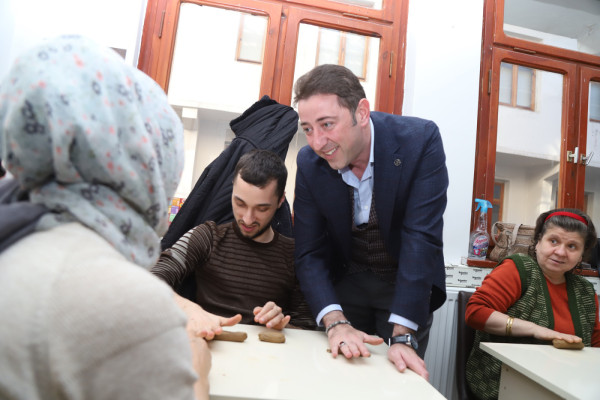 BANDIRMA BELEDİYESİ’NDEN ÖRNEK DAVRANIŞ… Bandırma Belediyesi Kültür ve Sosyal etkinliler kapsamında yepyeni bir sosyal sorumluluk projesini daha uygulamaya aldı. Proje kapsamında Harun Karacan Gençlik ve Spor Merkezinde oluşturulan özel sınıfta engelli çocuklarımıza El Sanatları Kil Dersi verilmeye başlandı. Çocuklarımızın el becerilerini geliştirmeleri ve aynı zamanda aileleriyle birlikte sosyalleşebilmesini amaçlayan proje kapsamında 10 öğrenci eğitim alıyor. Yeni uygulamaya alınan Kil Dersiyle ilgili çalışmaları yerinde takip etmek amacıyla kursiyerlere ve ailelere ziyaret gerçekleştiren Belediye Başkanı Av. Tolga Tosun, Bandırma Belediyesi’nin sosyal sorumluluk projelerinde örnek bir belediye olmasını hedeflediklerini, bu amaçla engelli çocuklarımıza ve ailelerine kil dersini başlattıklarını söyledi. Başkan Tolga Tosun ziyaret ile ilgili şunları söyledi: “Bandırma Belediyesi olarak sosyal alanda yapmayı planladığımız projelerimizle örnek gösterilen bir belediye olmayı hedefliyoruz. Bu amaçla engelli çocuklarımızın el becerilerinin gelişmesine katkı sağlaması amacıyla El Sanatları Kil Dersini uygulamaya aldık. Bu projenin çocuklarımızın sosyalleşmesine ve onların mutlu olmasına katkı sunacağını düşünüyoruz. Şu anda sınıfımızda 10 öğrencimiz aileleriyle birlikte eğitim alıyor. Konusunda bilgili ve deneyimli öğretmenlerimiz eşliğinde kursumuz devam edecek” dedi.