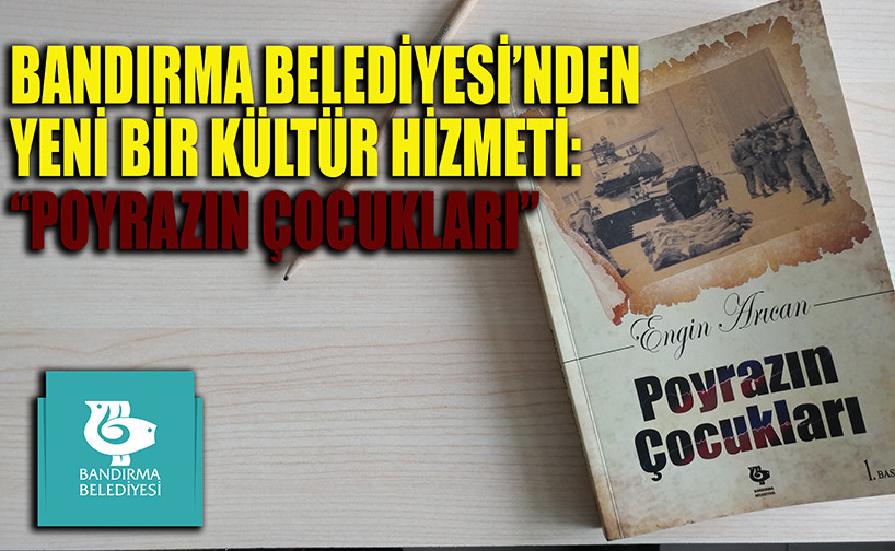 BANDIRMA BELEDİYESİ’NDEN YENİ BİR KÜLTÜR HİZMETİ: “POYRAZIN ÇOCUKLARI”   Bandırma Belediyesi Kültür Yayınları kapsamında değerli bir eser daha Bandırmalılarla buluşuyor. Kentimizin önde gelen Gazeteci Yazarlarından Engin Arıcan’ın son kitabı olan “Poyrazın Çocukları” adlı eser Bandırma Belediyesi Kültür Yayınları kapsamında basımı gerçekleşen eserler arasında yerini aldı.   Gazeteci-Yazar Engin Arıcan’ın “Ülkemizde Amerikancı faşits darbelerin mağduru olmuş, sorgu evlerinde, işkencelerde, darağaçlarında, hain pusularda katledilmiş tüm insanlarımızın anısına…” diyerek kaleme aldığı Poyrazın Çocukları, 12 Eylül askeri darbesinin öncesinde ve sonrasında yaşanan olayları, bu olaylarda ülkemizde ve bölgemizde hayatı kaybetmiş insanların hikayesi ele alınıyor.   İmza ve tanıtım günü 12 Kasım’da   Yakın döneme ışık tutan “Poyrazın çocukları” adlı eserin Tanıtım ve imza günü ise 12 Kasım 2019 Salı günü saat 18.00’da Bandırma Belediyesi Nikah Salonunda gerçekleşecek.