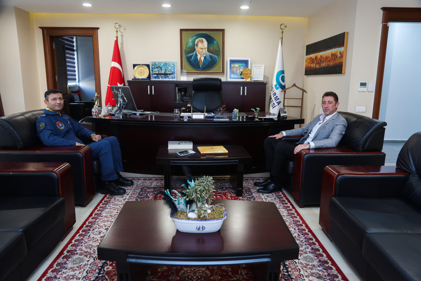Bandırma 6.Ana Jet Üssü Komutanı Tuğgeneral Oğuz Okuyucu, Belediye Başkanı Av. Tolga Tosun’u makamında ziyaret etti. Nezaket amacıyla gerçekleşen ziyaretten duyduğu memnuniyetini dile getiren Belediye Başkanı Av. Tolga Tosun, Tuğgeneral Okuyucu’ya yeni görevinde başarılar diledi.