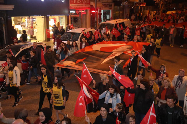 BANDIRMALILARDAN CUMHURİYET YÜRÜYÜŞÜNE COŞKULU KATILIM