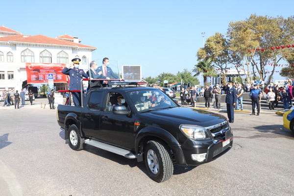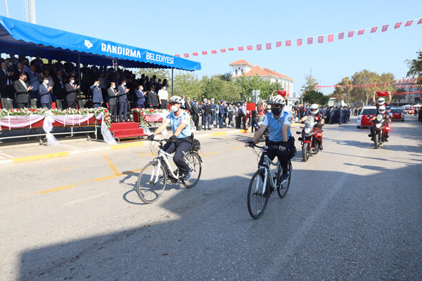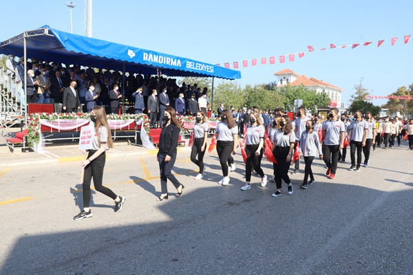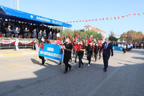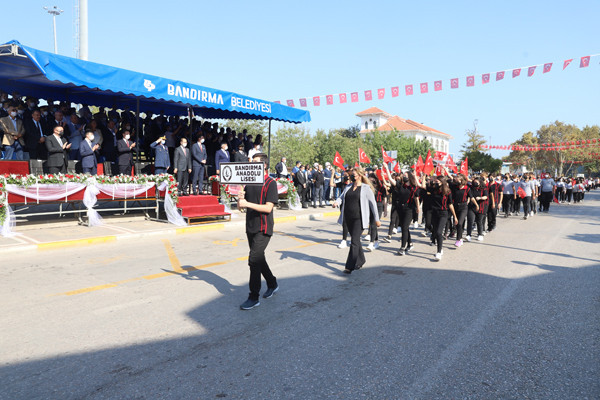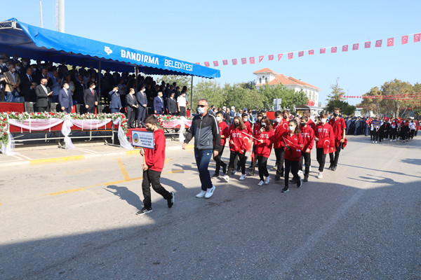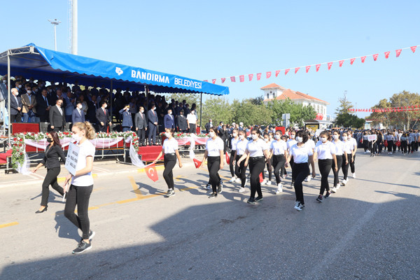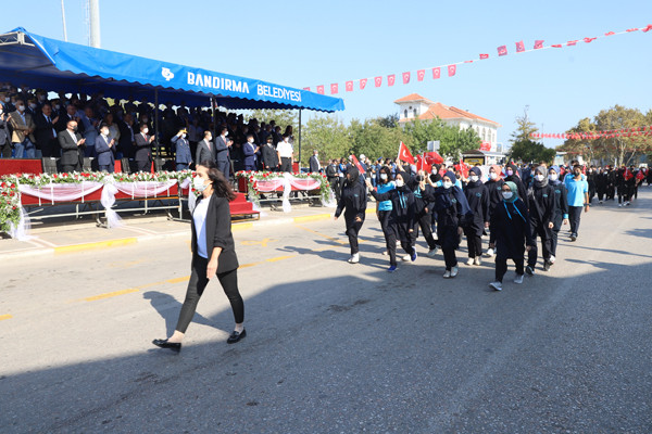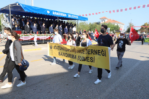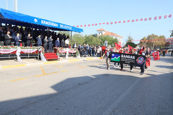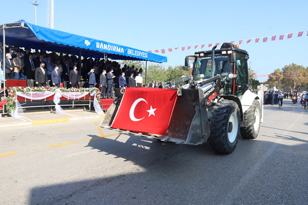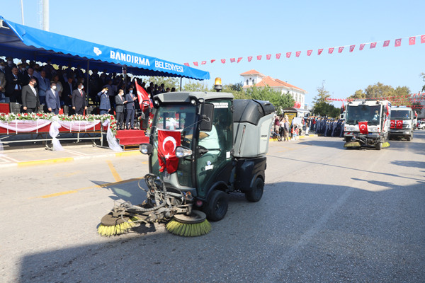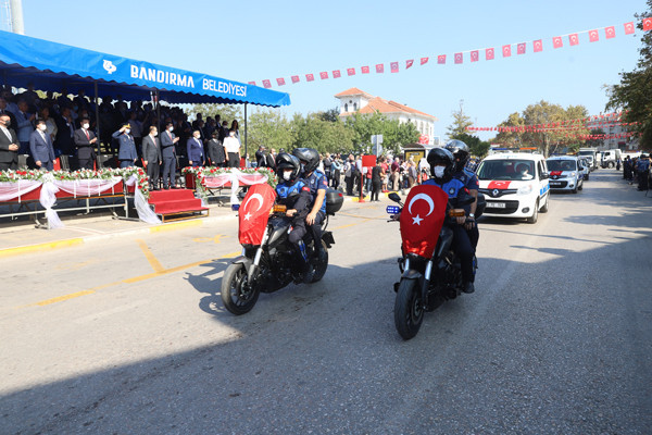BANDIRMA’NIN DÜŞMAN İŞGALİNDEN KURTULUŞUNUN 99. YILDÖNÜMÜ BÜYÜK SEVİNÇ VE TÖRENLERLE KUTLANDI   Önce Cumhuriyet Meydanında; devlet kurumlarının Atatürk’e çelenk sunumu ve saygı duruşundan sonra okunan İstiklal Marşıyla, Bandırma’nın Kurtuluş Günü resmi kutlama tören programı gerçekleştirildi. Bu törenin ardından şehir protokolü, Barış Manço Kültür Merkezi karşısında kurulan özel alana geçiş yaptı.    Bandırma Belediyesinin Kaymakamlık, Garnizon Komutanlığı, Milli Eğitim Müdürlüğü ve ilgili kurumlarla yaptığı koordinasyon neticesinde, 99. Kurtuluş Günü Etkinliklerinde geçit töreni düzenlendi. Bandırma İlçe Kaymakamı Engin Aksakal, Garnizon Komutanı Hava Pilot Tuğgeneral Selahattin Akalp, Bandırma Belediye Başkanı Av. Tolga Tosun, törene katılanlar ve halkımızı araçla selamladı.   Bandırma Belediye Başkanı Av. Tolga Tosun yaptığı konuşmada, işgalin son gününde yaşananların kaleme alındığı anıları paylaştı. Belediye Başkanı konuşmasının devamında; “Bandırma’yı düşman işgalinden kurtarmak adına, Ayyıldız Tepede kahramanca savaşarak şehit olan; 80 Mehmetçiğimizi, komutanları Yarbay Hüseyin Vecihi Beyi, Binbaşı Süleyman Bey’i minnet ve rahmetle anıyorum. Büyük kurtuluşun, tarihe sığmayan bağımsızlık mücadelemizin Başkomutanı, kurduğu Laik Türkiye Cumhuriyeti ile çağdaşlık ve uygarlık yolundaki büyük önderimiz; Gazi Mustafa Kemal Atatürk’ü, silah arkadaşlarını, dünden bugüne tüm şehit ve gazilerimizi rahmet, minnet, saygıyla anıyorum. Barışın, kardeşliğin, demokrasinin, kültür ve sanatın kenti, Cumhuriyetimizin yılmaz savunucusu Bandırmamızın, düşman işgalinden kurtuluşunun 99. yıldönümü kutlu olsun” dedi.   Konuşmanın ardından, Balıkesir Bakım Mühimmat Eğitim Merkezi Bölge Bando Komutanlığı Bandosunun çaldığı marşlar eşliğinde; Hava Üssü ve Jandarma Birliklerindeki Mehmetçiklerimiz, askeri araçlar, gazilerimiz, Kurtuluş Günümüzü alçak uçuş yaparak kutlayan savaş pilotlarımız, polislerimiz, okullarımız, resmî kurumlar, STK’lar, meslek odaları, dernekler, spor kulüpleri ayrıca Bandırma Belediyesi ve Büyükşehir Belediyesi araçlarıyla geçit törenine katılarak halkımızı selamladılar.   Binlerce Bandırmalı vatandaşımızın, ellerinde bayraklarla, gurur ve sevinçle izlediği Kurtuluş Günü Etkinlikleri Geçit Töreni büyük beğeni topladı. CHP Genel Başkan Yardımcısı Ahmet Akın, AKP Milletvekili Yavuz Subaşı, CHP İl Başkanı Serkan Sarı, Bandırma Cumhuriyet Başsavcısı Cüneyt Demirdaş, Onyedi Eylül Üniversitesi Rektörü Prof. Dr. Süleyman Özdemir’de törene katılarak bu sevince ortak oldular.