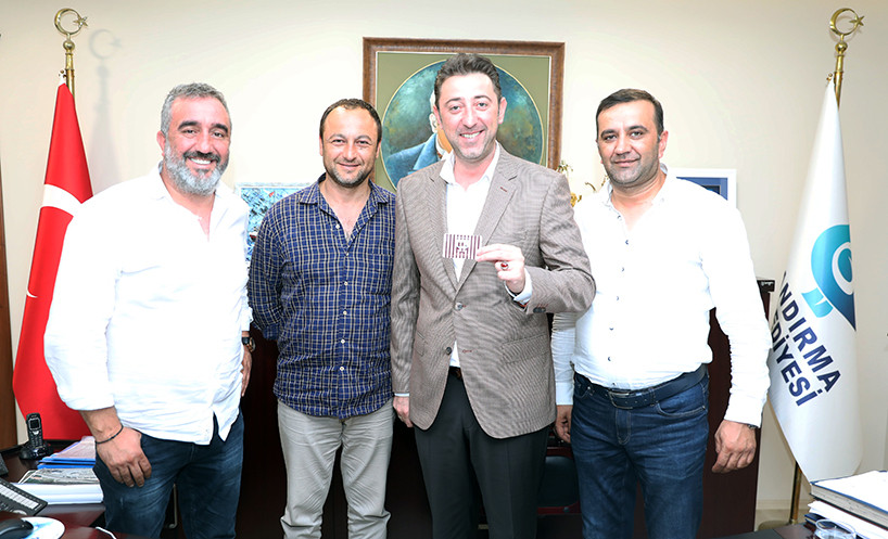 BANDIRMASPOR YÖNETİM KURULU ÜYELERİNDEN BAŞKAN TOLGA TOSUN’A NEZAKET ZİYARETİ Bandırmaspor Yönetim Kurulu Üyeleri Mehmet Özbay, Özgür Kızıllar ve Mustafa Der, Belediye Başkanı Av.Tolga Tosun’u makamında ziyaret ederek yeni sezon öncesi Kombine Kart takdim etti. Başkan Tolga Tosun, Bandırmaspor’a her türlü desteği vermeye hazır olduklarını belirterek yeni sezon öncesi tüm taraftarlara kombine kart alma çağrısında bulundu. Başkan Tosun: “Bandırmaspor bu kente gönül vermiş herkesin ortak sevdasıdır. Bandırmasporumuza bu açıdan her türlü desteği vermek ve olanak yaratmak bizlerin görevidir. Bugünde Yönetim Kurulunun değerli üyeleri ziyaretime geldiler. Yeni sezon öncesi kulübümüze taraftar olarak verebileceğimiz en önemli destek kombine desteği olacaktır. Hem ekonomik olarak hem de dolu tribünler önünde takımımızın sahaya çıkması Bandırmasporumuzun şampiyonluk hedefine daha da yaklaştıracaktır. Vefakar olan Bandırmaspor taraftarları bu yılda takımlarına bu desteği sağ” dedi.