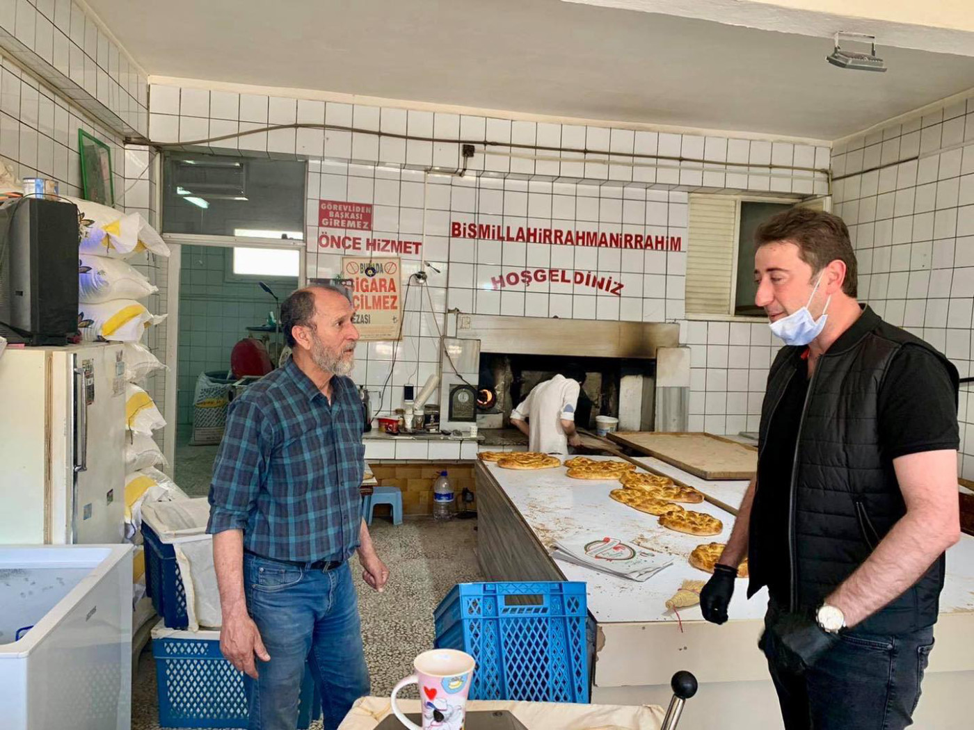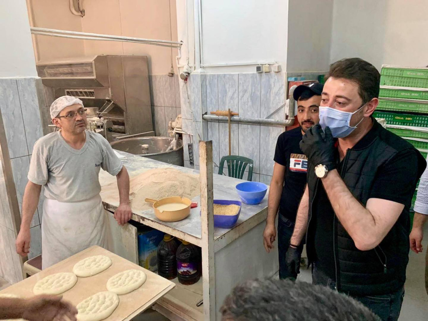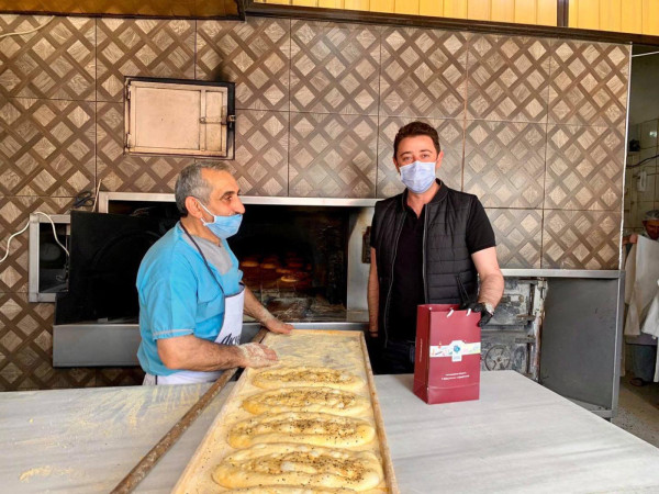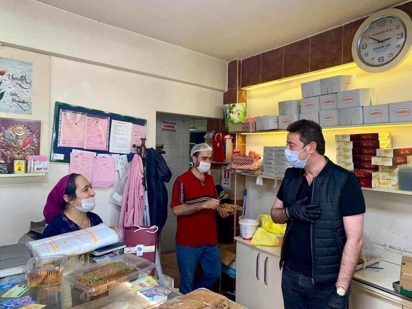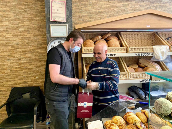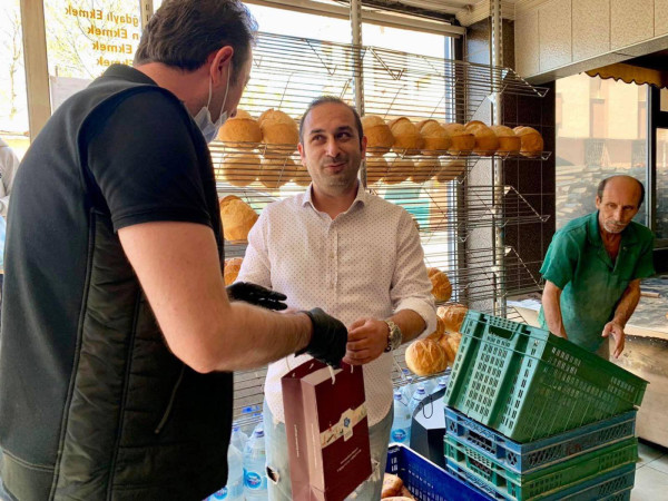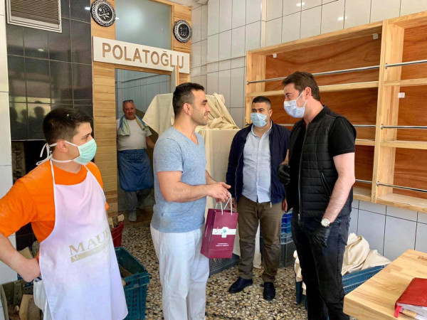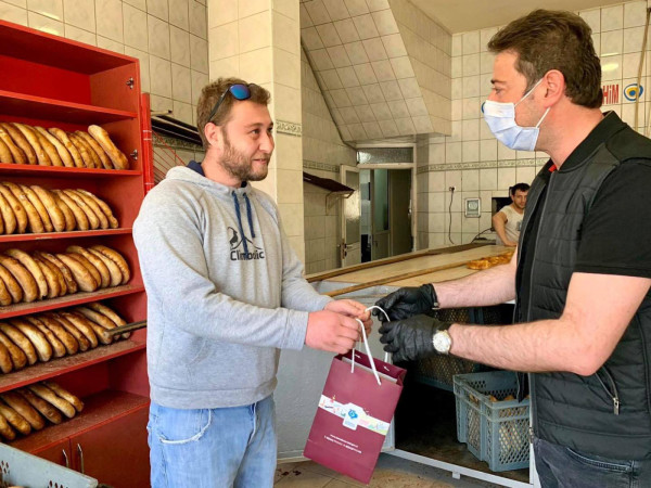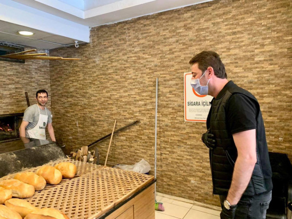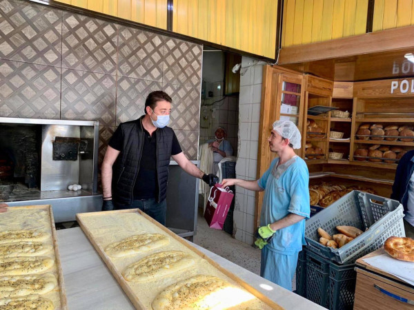 BAŞKAN 1 MAYISTA ÇALIŞAN FIRINCILARI ZİYARET ETTİ Belediye Başkanı Av. Tolga Tosun Kentimize hizmet veren fırınlarımızı gezip 1 Mayıs Emek ve Dayanışma günlerini kutladı. Korona salgınıyla ilgili hijyen konusunda daha dikkatli olmaları için fırıncıları uyarıp el dezenfektanı ve maske dağıtan Başkan Av. Tolga Tosun; “Bu zor süreci hepimiz üstüne düşeni layıkıyla yaparak kolayca atlatabileceğimize inanıyor, herkese sağlıklı günler diliyorum” dedi.