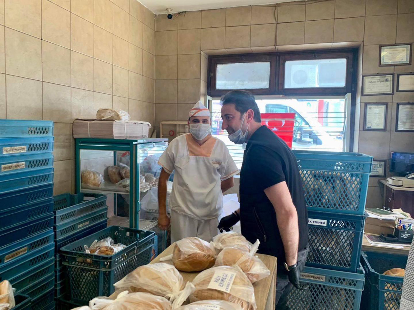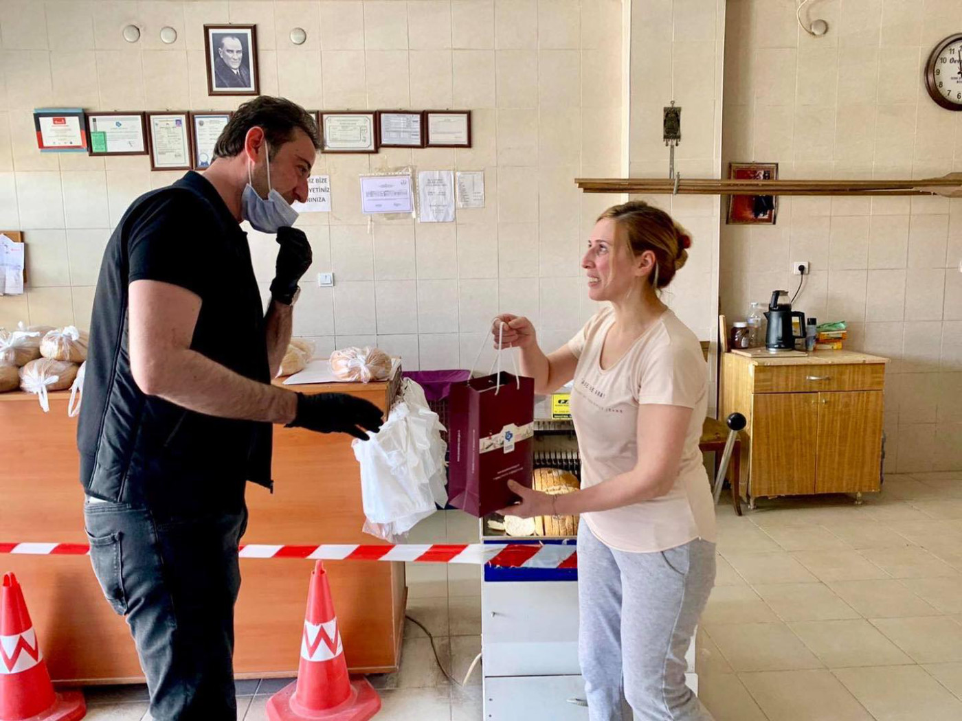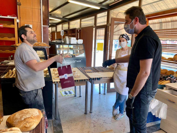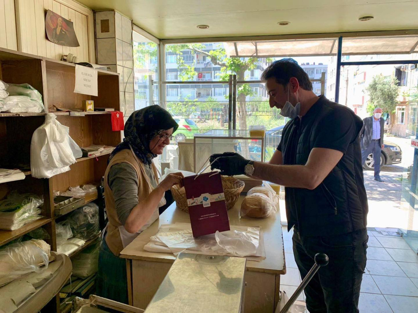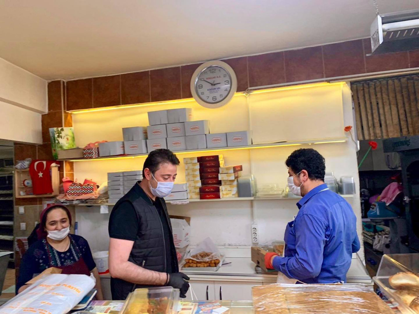 BAŞKAN 1 MAYISTA ÇALIŞAN FIRINCILARI ZİYARET ETTİ Belediye Başkanı Av. Tolga Tosun Kentimize hizmet veren fırınlarımızı gezip 1 Mayıs Emek ve Dayanışma günlerini kutladı. Korona salgınıyla ilgili hijyen konusunda daha dikkatli olmaları için fırıncıları uyarıp el dezenfektanı ve maske dağıtan Başkan Av. Tolga Tosun; “Bu zor süreci hepimiz üstüne düşeni layıkıyla yaparak kolayca atlatabileceğimize inanıyor, herkese sağlıklı günler diliyorum” dedi.