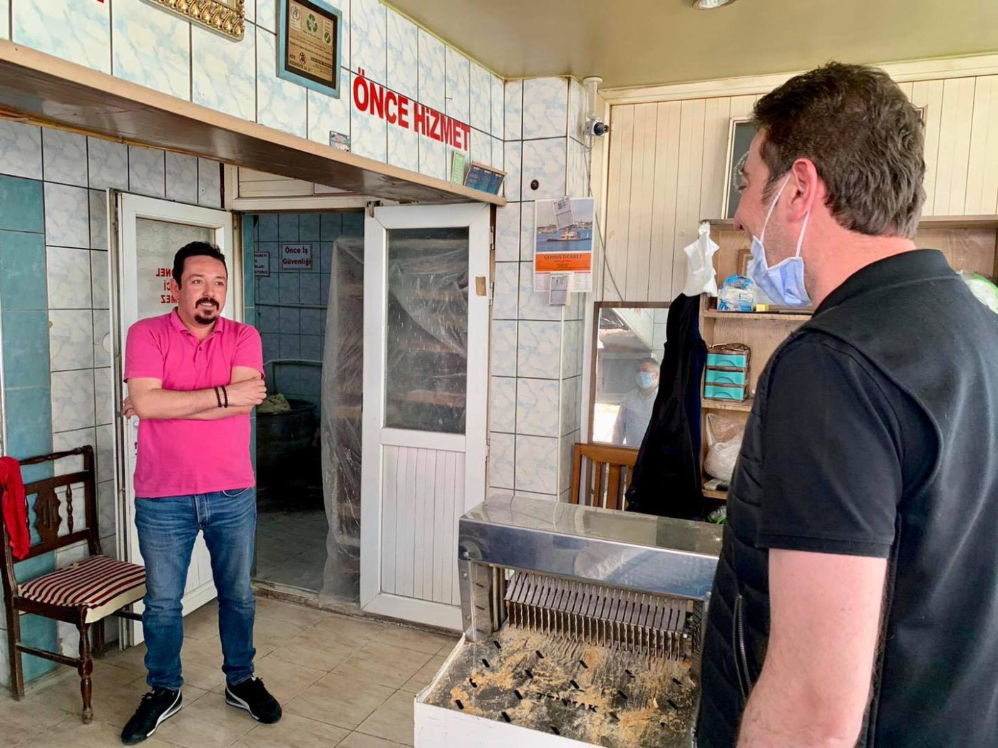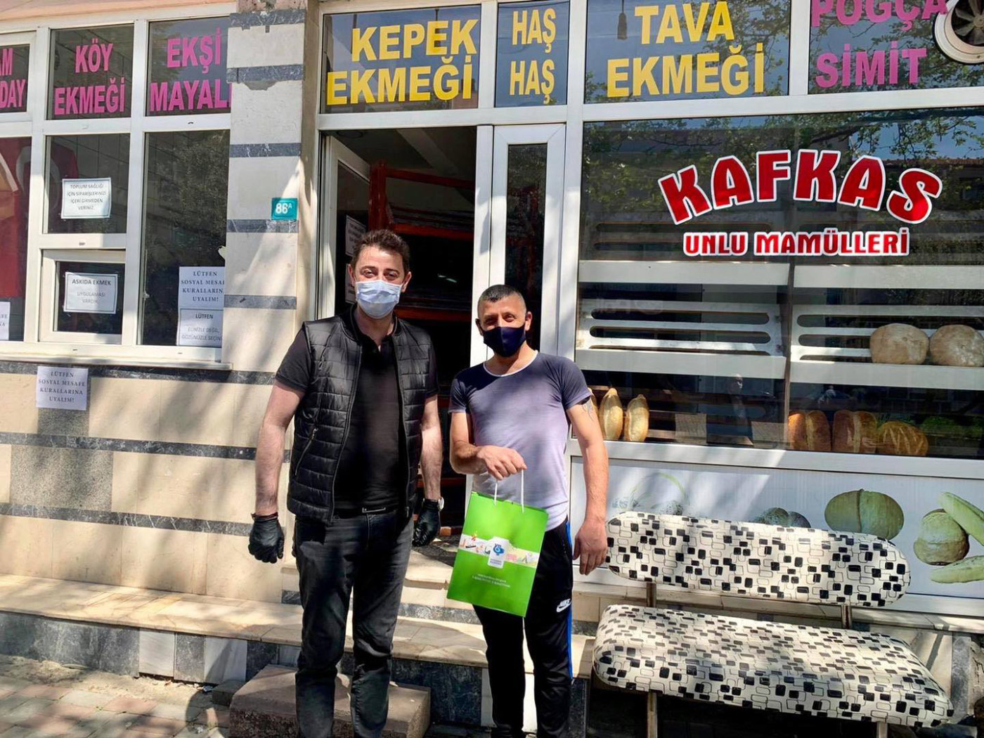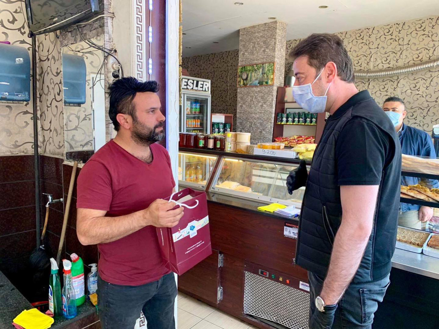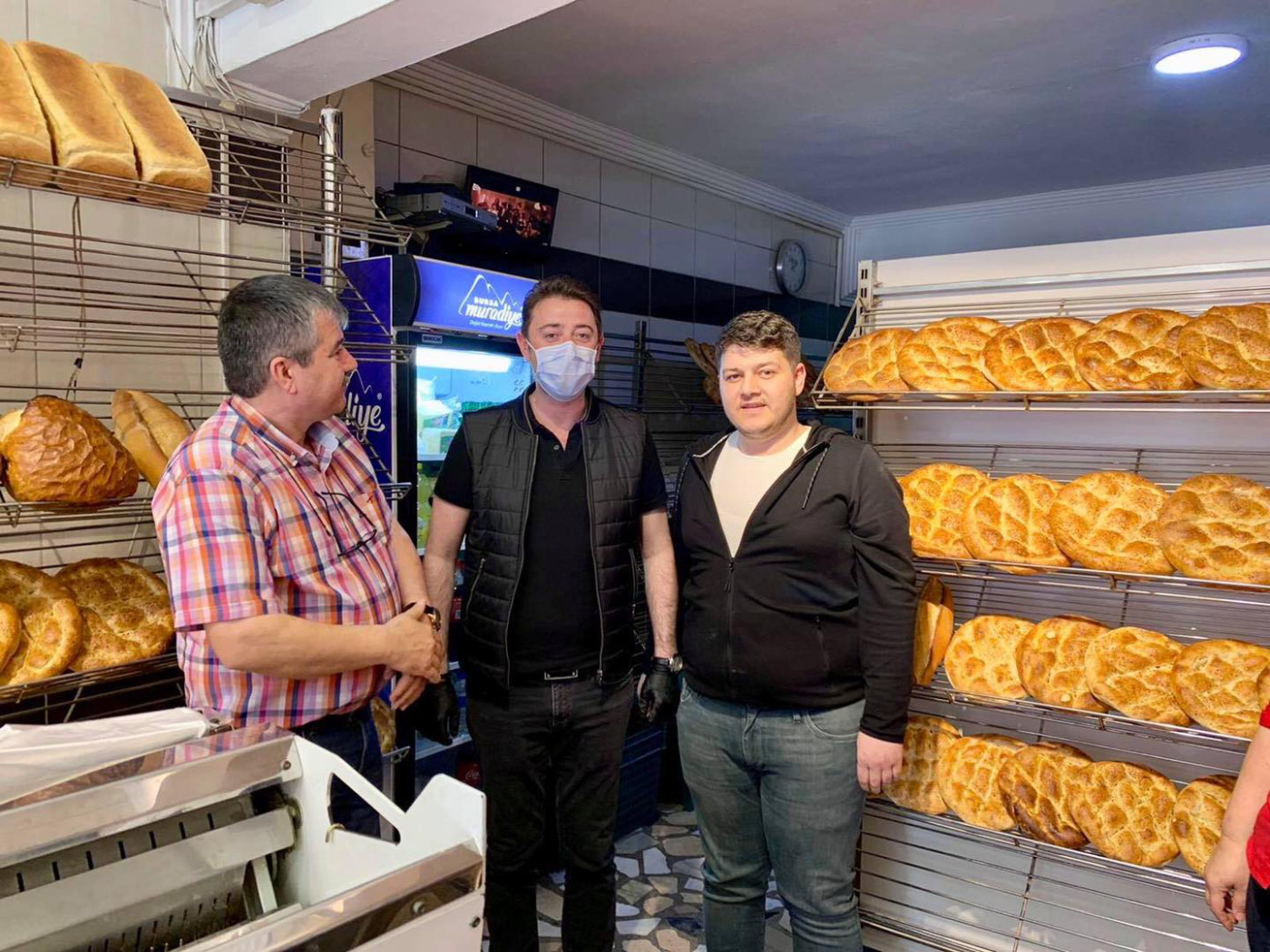 BAŞKAN 1 MAYISTA ÇALIŞAN FIRINCILARI ZİYARET ETTİ Belediye Başkanı Av. Tolga Tosun Kentimize hizmet veren fırınlarımızı gezip 1 Mayıs Emek ve Dayanışma günlerini kutladı. Korona salgınıyla ilgili hijyen konusunda daha dikkatli olmaları için fırıncıları uyarıp el dezenfektanı ve maske dağıtan Başkan Av. Tolga Tosun; “Bu zor süreci hepimiz üstüne düşeni layıkıyla yaparak kolayca atlatabileceğimize inanıyor, herkese sağlıklı günler diliyorum” dedi.