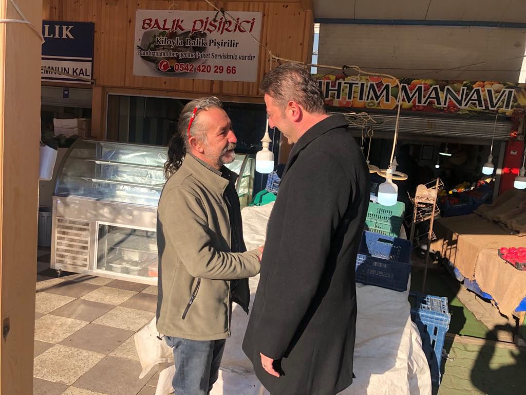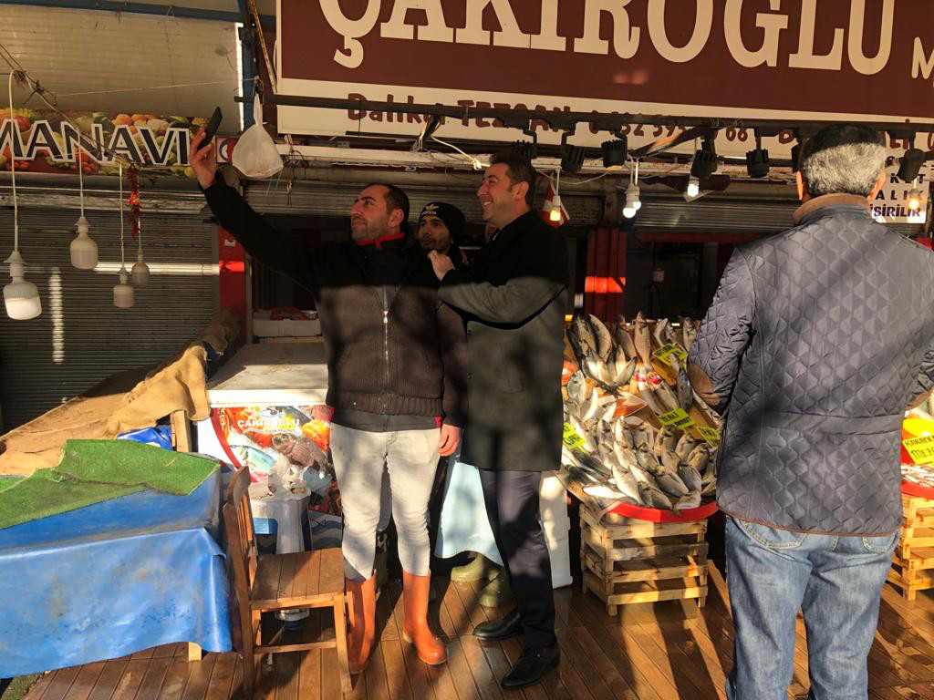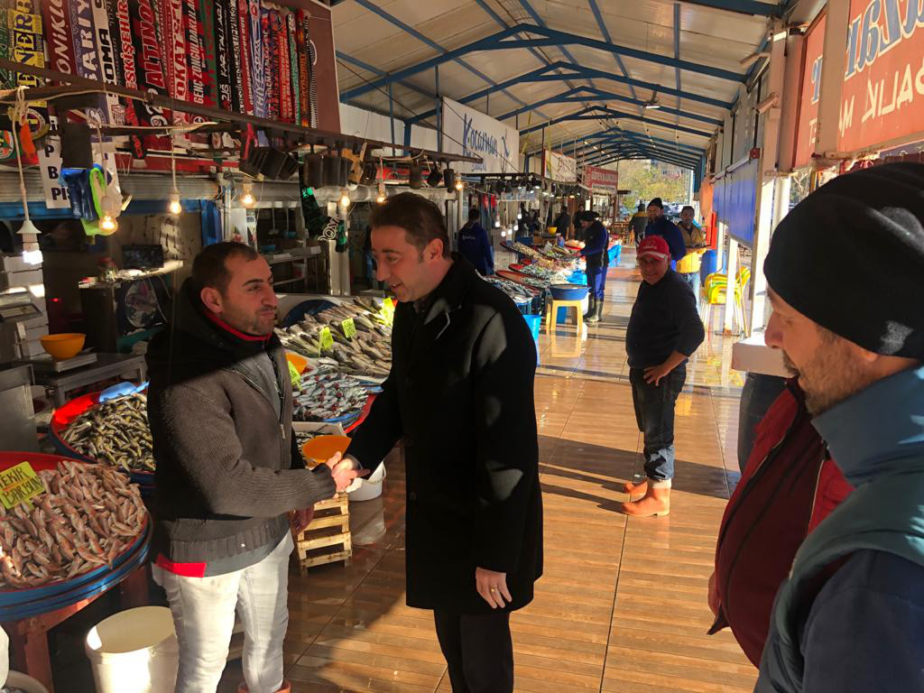 BAŞKAN AV. TOLGA TOSUN BALIKÇI ESNAFINA HAYIRLI İŞLER DİLEDİ   Belediye Başkanı Av. Tolga Tosun, “Seçmek de Seçilmek de Hakkımız” isimli konferansa konuşmacı olarak kentimize gelen Cumhuriyet Halk Partisi PM Üyesi Semra Dinçer ile birlikte Balıkhanede bulunun balıkçı esnafını ziyaret etti.   Balıkhanedeki balıkçı esnafını tek tek gezerek hayırlı işler temennisinde bulanan Başkan Av. Tolga Tosun ve CHP PM Üyesi Semra Dinçer esnafla sohbet etti ve onların isteklerini sorunlarını dinledi.   Ziyaretlerinden dolayı memnunluk duyduğunu ifade eden Balıkçı esnafı da kendilerine gösterdiği yakın ilgiden dolayı Başkan Av. Tolga Tosun’a ve Semra Dinçer’e teşekkür etti ve çalışmalarında başarılar diledi.