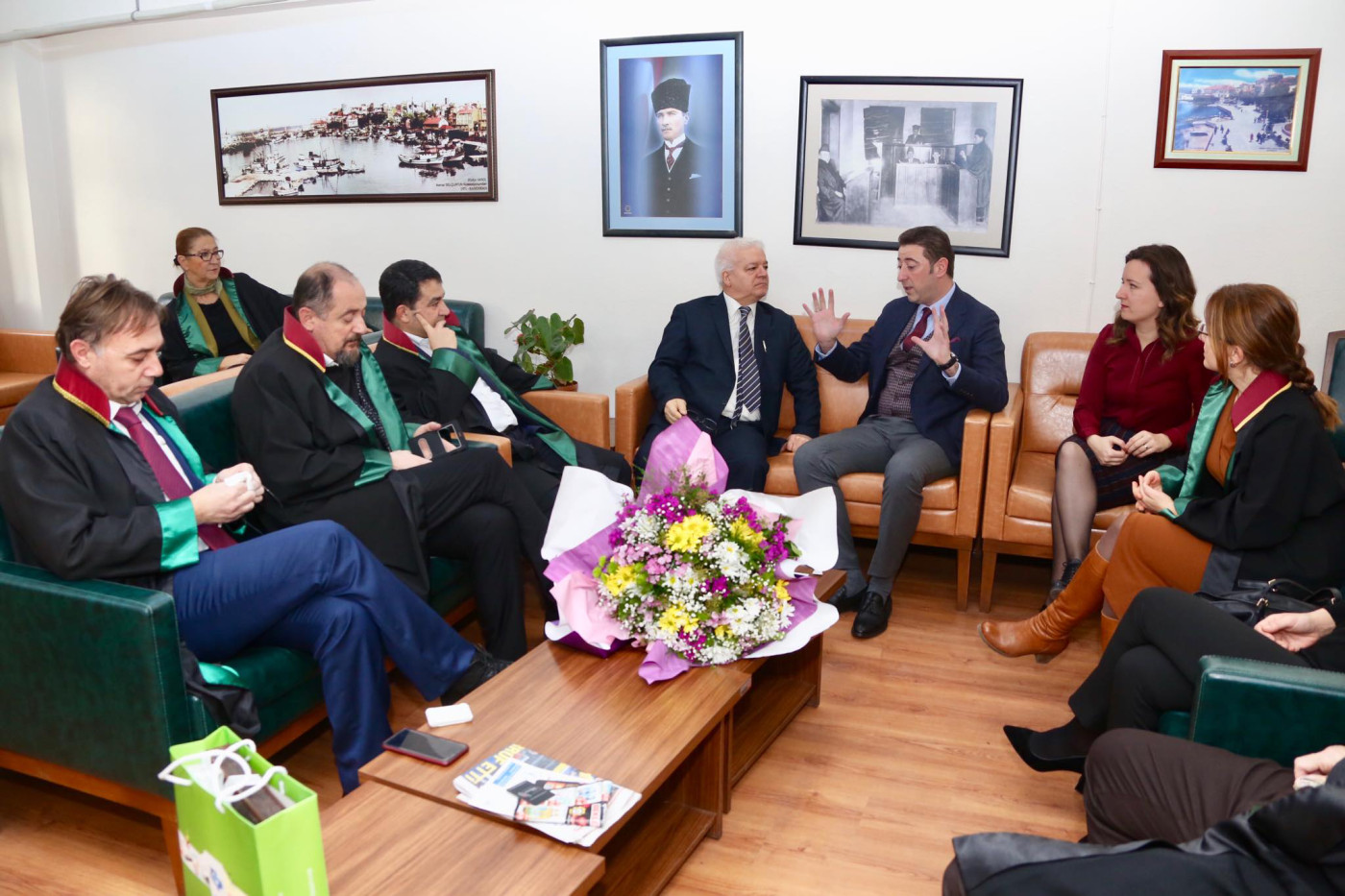 BAŞKAN AV. TOLGA TOSUN BALIKESİR BAROSU'NUN KURULUŞUNUN 100. YILINDA MESLEKTAŞLARI İLE BİR ARAYA GELDİ   Bandırma Belediye Başkanı Av. Tolga Tosun, Balıkesir Barosu'nun kuruluşunun 100. Yılında adliyedeki meslektaşları ile bir araya geldi ve Cumhuriyet Başsavcısı Önder Yeniçeriyi makamında ziyaret etti.   Konu ile ilgili açıklama yapan Belediye Başkanı Av. Tolga Tosun: “Kurtuluş Savaşımızın en zor koşullarda devam ettiği günlerde, Kuvay-i Milliye ruhuyla 1920’de Balıkesir’de kurulan Baromuz haklı bir gurur yaşıyor. Hukukun üstünlüğüne inanan, laik, demokratik Atatürk Cumhuriyetinin bir avukatı ve Bandırma Belediye Başkanı olarak Balıkesir Baromuzun 100. Yılını içtenlikle kutluyorum. Kurucu Başkan Süleyman Sadi Bey’i, tarihe geçmiş bütün hukuk kahramanlarımızı saygı, minnet ve rahmetle anıyorum” dedi.
