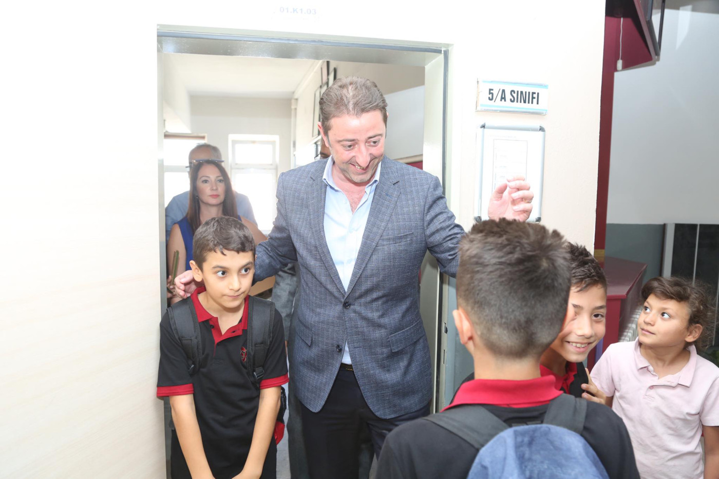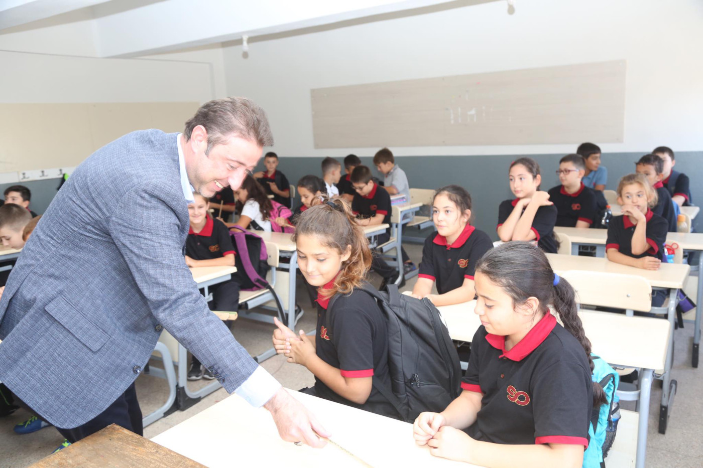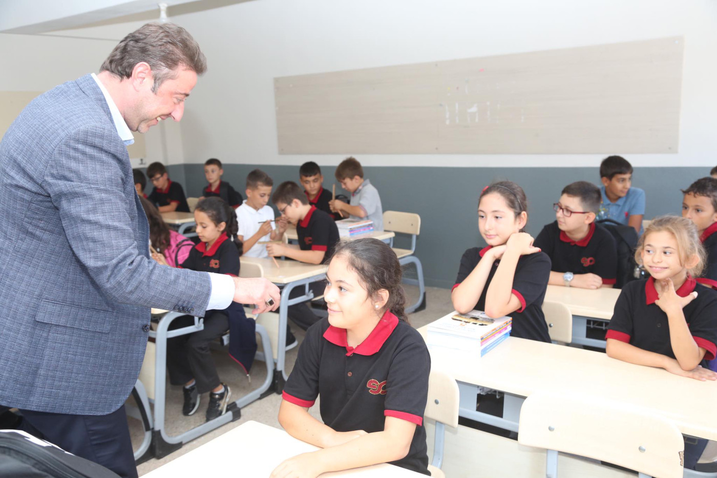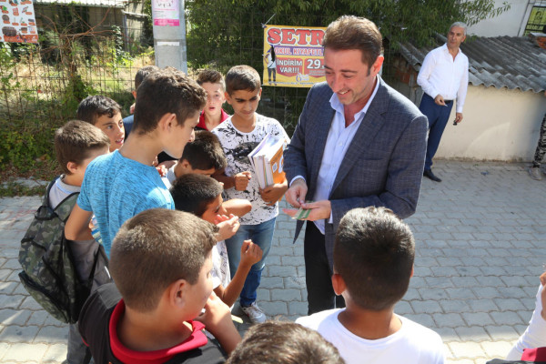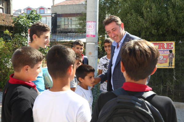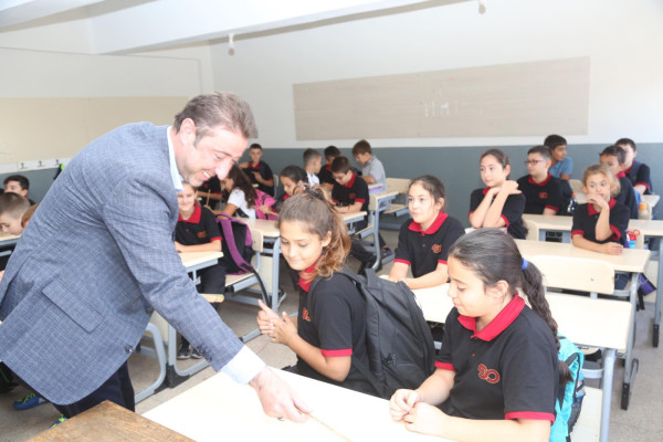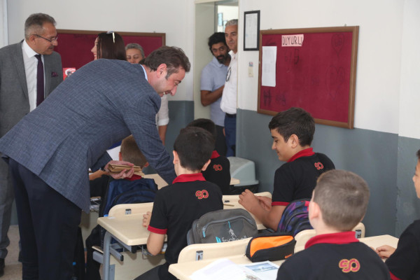 BAŞKAN AV. TOLGA TOSUN ESNAF SANATKARLAR ORTA OKULUNU ZİYARET ETTİ   Belediye Başkanı Av. Tolga Tosun Yeni Eğitim Öğretim Yılının başlaması nedeniyle Bandırma Esnaf Sanatkarlar Ortaokulunu ziyaret ederek öğrenci ve öğretmenlere başarılar diledi.   Ziyarette konuşan Belediye Başkanı Av. Tolga Tosun: “Yeni Eğitim Öğretim Yılı bugün çocuklarımızın okul sıralarını doldurmalarıyla birlikte başladı. Umudumuz olan, geleceğimiz olan çocuklarımıza, onlara bilgilerini aktaran öğretmenlerimize başarılar diliyorum. Bizler; büyükler olarak çocuklarımıza aydınlık bir gelecek hazırlamak zorundayız. Bu konuda hepimize görev düşüyor. İyi bir gelecek için hep birlikte el ele vererek çalışacağız. Kazanan çocuklarımız, kazanan ülkemiz olacak” dedi.