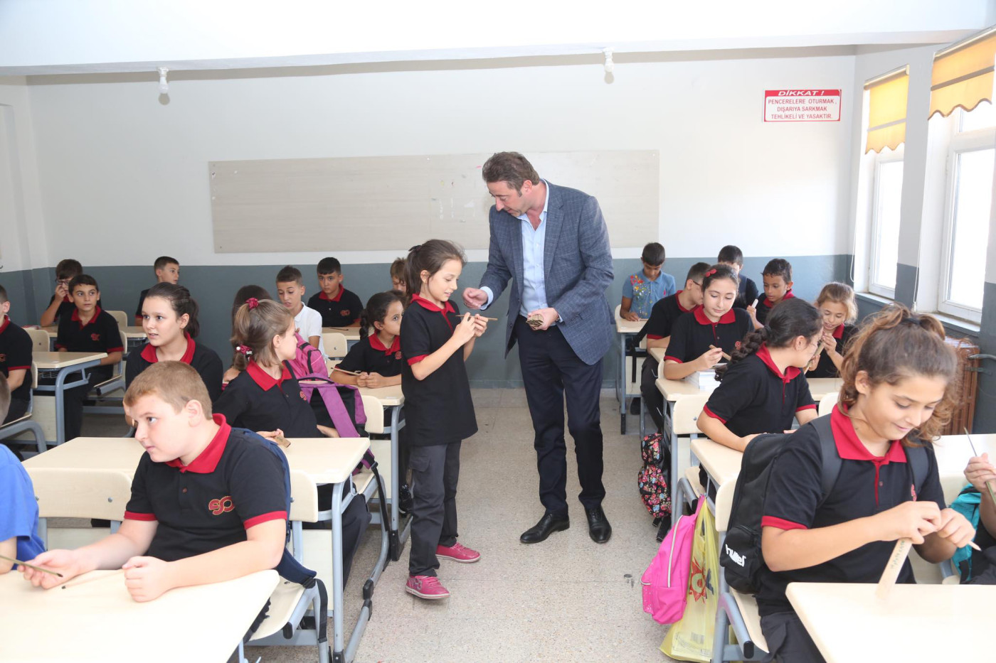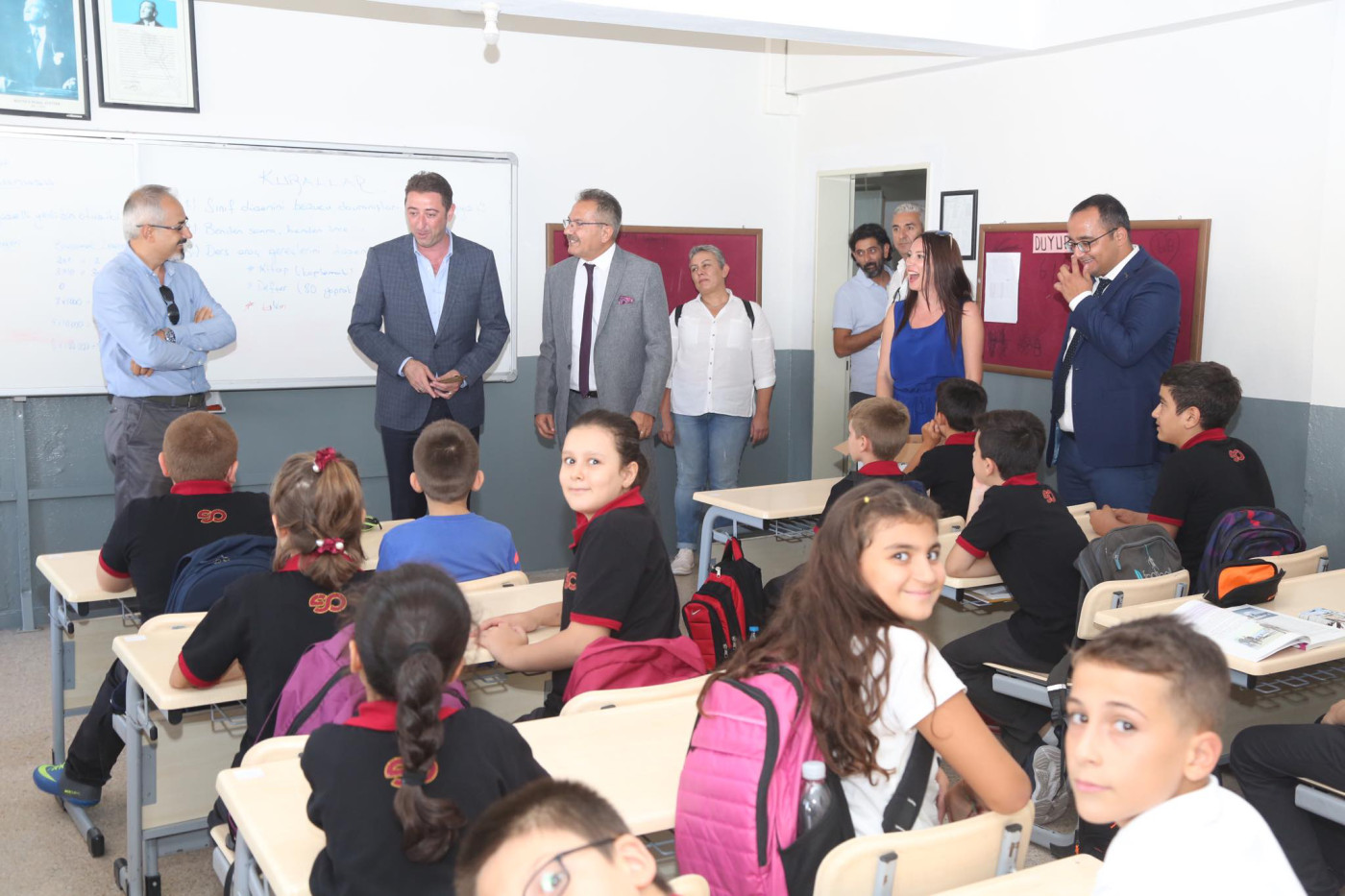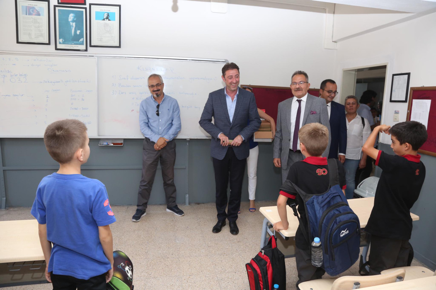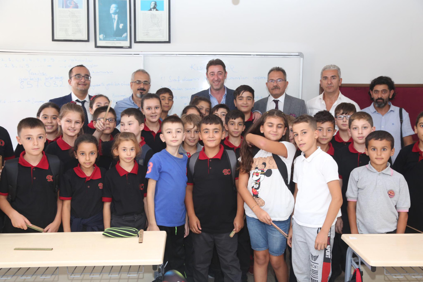 BAŞKAN AV. TOLGA TOSUN ESNAF SANATKARLAR ORTA OKULUNU ZİYARET ETTİ   Belediye Başkanı Av. Tolga Tosun Yeni Eğitim Öğretim Yılının başlaması nedeniyle Bandırma Esnaf Sanatkarlar Ortaokulunu ziyaret ederek öğrenci ve öğretmenlere başarılar diledi.   Ziyarette konuşan Belediye Başkanı Av. Tolga Tosun: “Yeni Eğitim Öğretim Yılı bugün çocuklarımızın okul sıralarını doldurmalarıyla birlikte başladı. Umudumuz olan, geleceğimiz olan çocuklarımıza, onlara bilgilerini aktaran öğretmenlerimize başarılar diliyorum. Bizler; büyükler olarak çocuklarımıza aydınlık bir gelecek hazırlamak zorundayız. Bu konuda hepimize görev düşüyor. İyi bir gelecek için hep birlikte el ele vererek çalışacağız. Kazanan çocuklarımız, kazanan ülkemiz olacak” dedi.
