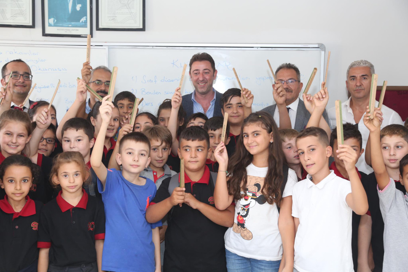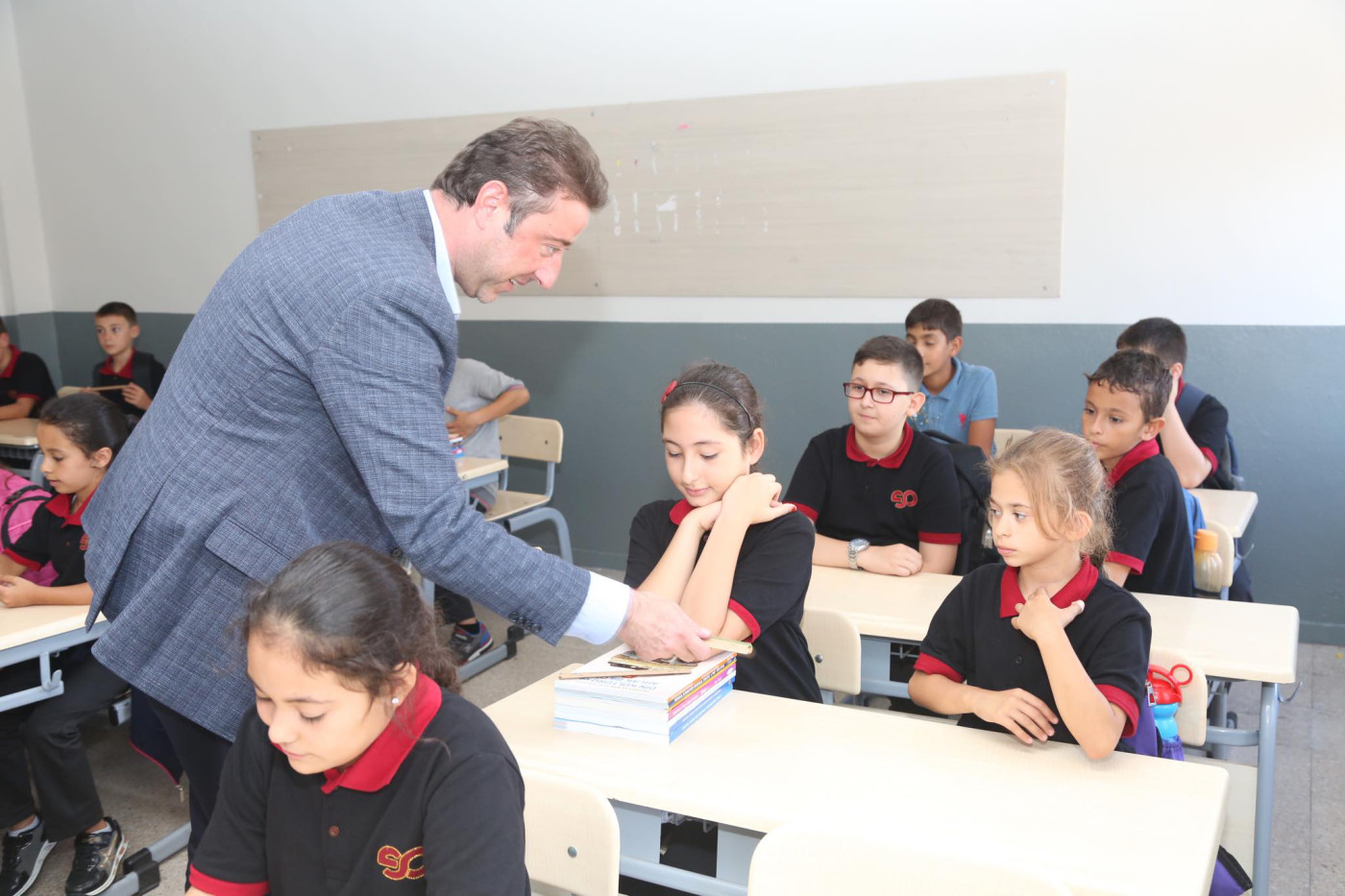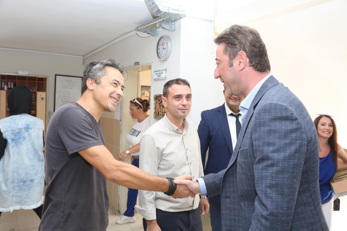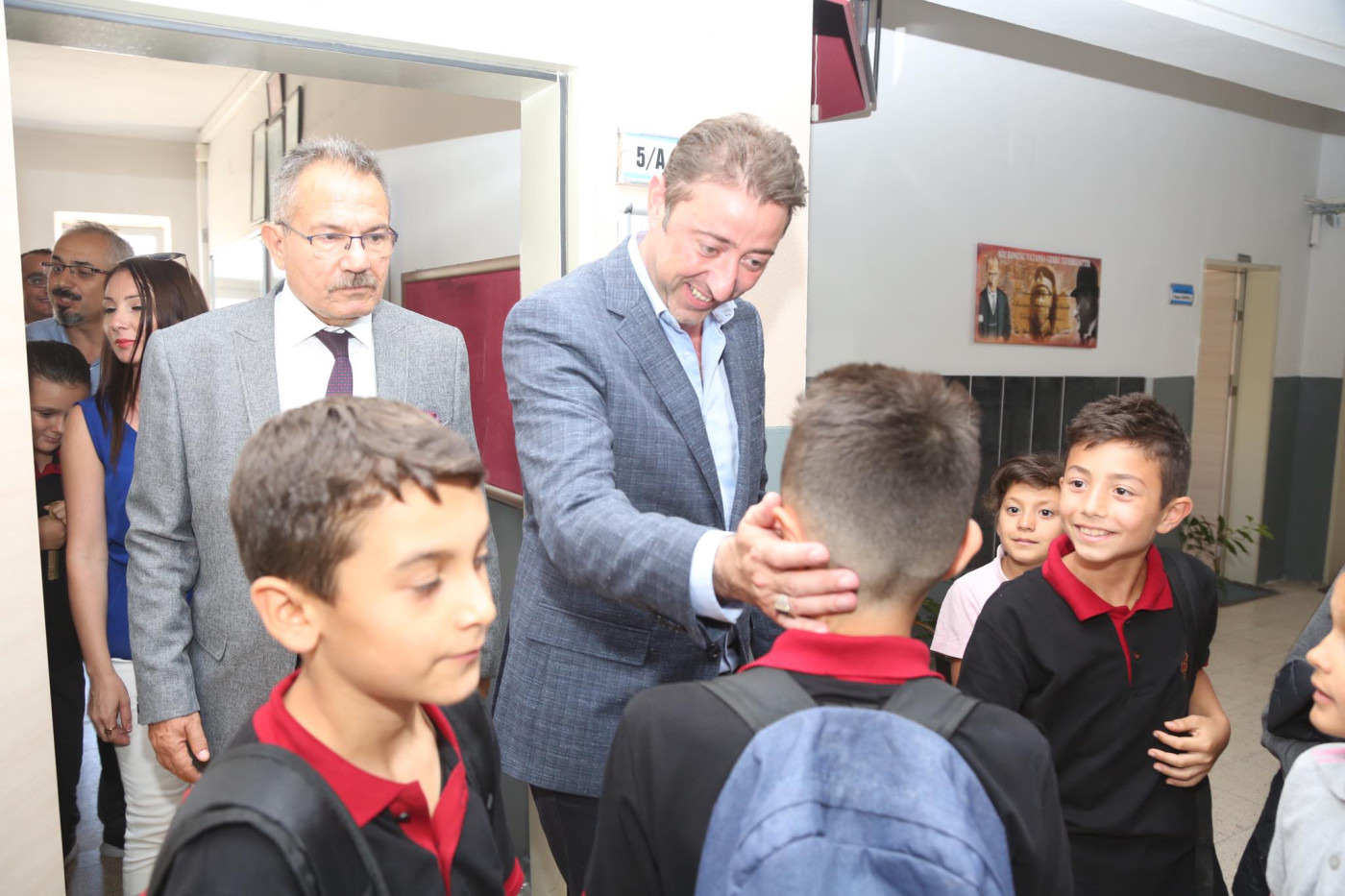BAŞKAN AV. TOLGA TOSUN ESNAF SANATKARLAR ORTA OKULUNU ZİYARET ETTİ   Belediye Başkanı Av. Tolga Tosun Yeni Eğitim Öğretim Yılının başlaması nedeniyle Bandırma Esnaf Sanatkarlar Ortaokulunu ziyaret ederek öğrenci ve öğretmenlere başarılar diledi.   Ziyarette konuşan Belediye Başkanı Av. Tolga Tosun: “Yeni Eğitim Öğretim Yılı bugün çocuklarımızın okul sıralarını doldurmalarıyla birlikte başladı. Umudumuz olan, geleceğimiz olan çocuklarımıza, onlara bilgilerini aktaran öğretmenlerimize başarılar diliyorum. Bizler; büyükler olarak çocuklarımıza aydınlık bir gelecek hazırlamak zorundayız. Bu konuda hepimize görev düşüyor. İyi bir gelecek için hep birlikte el ele vererek çalışacağız. Kazanan çocuklarımız, kazanan ülkemiz olacak” dedi.