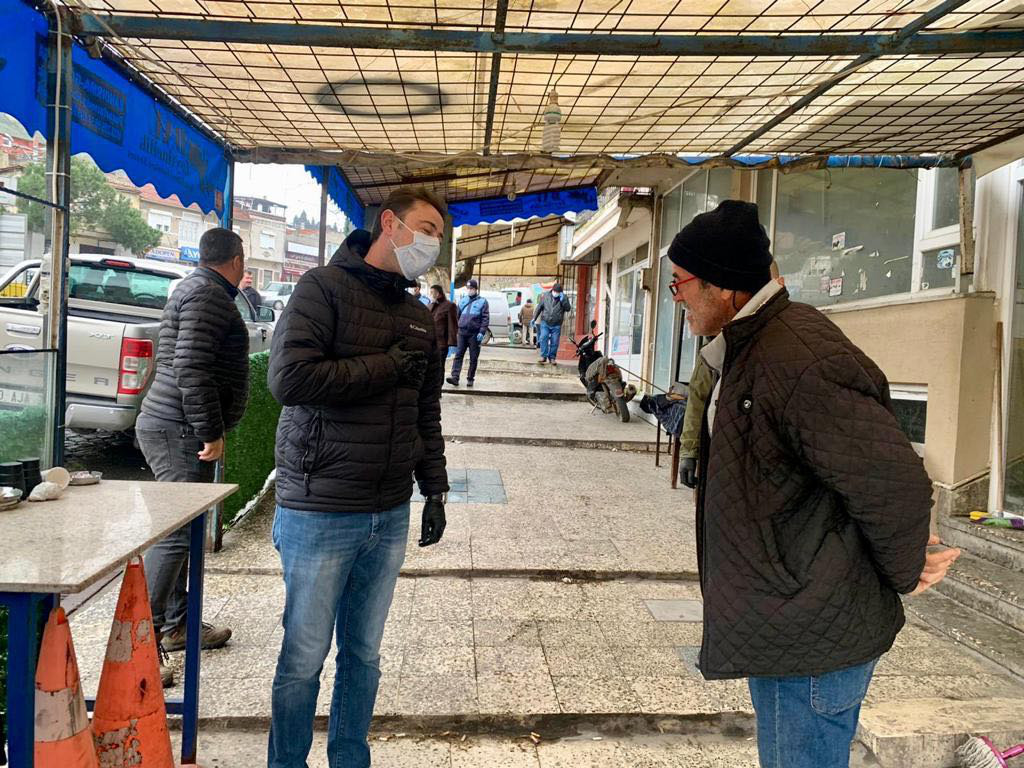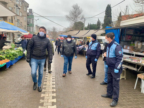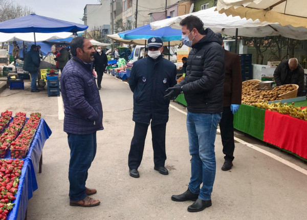 BAŞKAN AV. TOLGA TOSUN ESNAFI VE VATANDAŞLARI VİRÜSE KARŞI UYARDI   Belediye Başkanı Av. Tolga Tosun Edincik ve 100. Yıl Pazar yerlerini, Levent ve Paşabayır Mahallesi Muhtarlarını ziyaret etti. Belediye Başkanı Av. Tolga Tosun’a 100. Yıl Pazar gezisinde Belediye Başkan Yardımcısı Metin Ok’ta eşlik etti.   Gerçekleştirdiği ziyaretlerle ilgili açıklama yapan Başkan Av. Tolga Tosun: “Edincik ve 100. Yıl pazarımızı, Levent ve Paşabayır Mahallesi Muhtarlarımızı ziyaret ettim. Vatandaşlarımızı ve esnafımızı virüse karşı dikkatli olmalarını istedik. Önümüzdeki haftadan itibaren de sebze ve meyvelerin poşetlenerek satılması yönünde gerekli hazırlıklarını yapmalarını istedik. Bu zor süreci ancak toplum olarak bilinçli olur ve ona göre hareket edersek kolayca atlatabileceğiz” dedi.