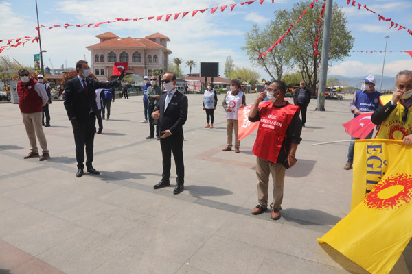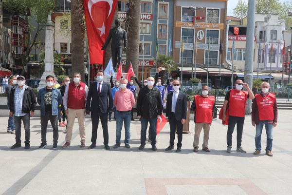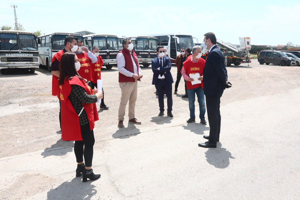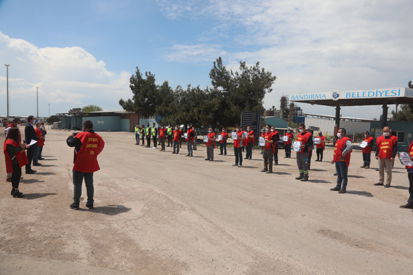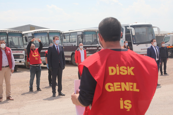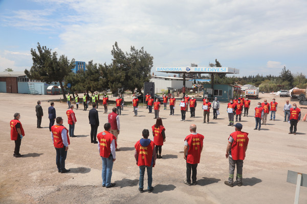 BAŞKAN AV. TOLGA TOSUN İŞÇİLERİN BAYRAMINI KUTLADI   Belediye Başkanı Av. Tolga Tosun 1 Mayıs İşçi Bayramı kutlamaları kapsamında Belediye Şantiyesinde işçilerle bir araya geldi.   Başkan Tolga Tosun, Belediye İşçilerine yaptığı konuşmada salgın nedeniyle bu yıl 1 Mayıs İşçi Bayramını anlamına ve önemine uygun bir şekilde meydanlarda coşkuyla kutlayamadıklarını belirterek: “Bu zor süreçte belediye çalışanlarının elini taşın altına koyarak çok özverili çalışmalar gerçekleştiriyor. Bu nedenle tüm belediye ve kamu çalışanlarımıza teşekkür etmek istiyorum” dedi.   Etkinlikte konuşan Belediye Başkanı Av. Tolga Tosun: “İşçi ve Emekçi Bayramımız kutlu olsun. Gönül isterdi ki geçen senelerde olduğu gibi alanlarda kutlama yapmak halaylar çekmek, şarkılar söylemek. Ancak son zamanlarda dünyada ve ülkemizde yaşanan Kovid19 salgını ile toplu etkinlikleri gerçekleştiremiyoruz. Yaklaşık bir yılı aşkın süredir birlikte çalışıyoruz. Üst yönetim olarak her zaman üretenden ve işçiden ve çalışandan yana bir tavrımız olduğunu anladığınız bildiğinizi düşünüyorum. Olabildiğince manevi olarak da sizlerin yanında yer alarak destek olmaya çalışıyoruz. Çalıştığınız ortamlara gelerek sizleri ziyaret ediyoruz. Toplu sözleşmelerimizde olabildiğince sizlerin isteklerini yerine getirmeye çalışıyoruz. Bu önümüzdeki dört yılda da aynı aylayışımızı sürdürmeye devam edeceğiz. Kovid19 salgını ile Belediyelerimizin ne kadar önemli olduğunu ortaya çıkarttı arkadaşlar. Şuan da Bandırmamızda ve diğer ilçelerde yapılan çalışmaların çoğu Belediyelerimizin üzerinde devam ediyor. Sağlık çalışanlarımız çok ön plana çıkıyor gerçekten hepsi bizim başımızın tacı çok önemliler olabildiğince biz kendilerini onore edip destek olmaya çalışıyoruz. Ama Belediye personelimizde bu süreçte elini taşın altına koyarak çok özverili çalışmalar gerçekleştiriyor. Ben huzurunuzda tüm belediye ve kamu çalışanlarımıza teşekkür etmek istiyorum. Bu 1 Mayısımız böyle oldu ancak bu günlerin bir an önce geçip gideceğini ve tekrar alanlarda törenlerle coşkulu bir şekilde kutlayacağımızı düşünüyorum. Hepinizin 1 Mayısını en içten dileklerimle kutluyor sevgiler saygılar sunuyorum” dedi.   Başkan Tolga Tosun buradan Cumhuriyet Meydanındaki 1 Mayıs için düzenlenen çelenk sunma ve kutlama programına katıldı. Ayrıca programda Başkan Yardımcısı Ozan Onur, CHP Bandırma İlçe Başkanı Dr. Selim Panç, ADD Bandırma Şube Başkanı Serdar Polat, memur ve işçi sendikalarının başkan ve temsilcileri yer aldı.