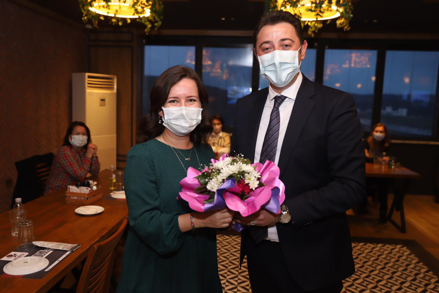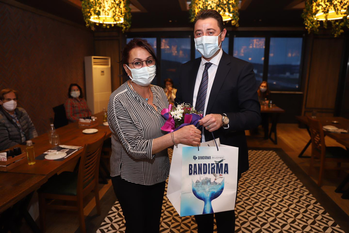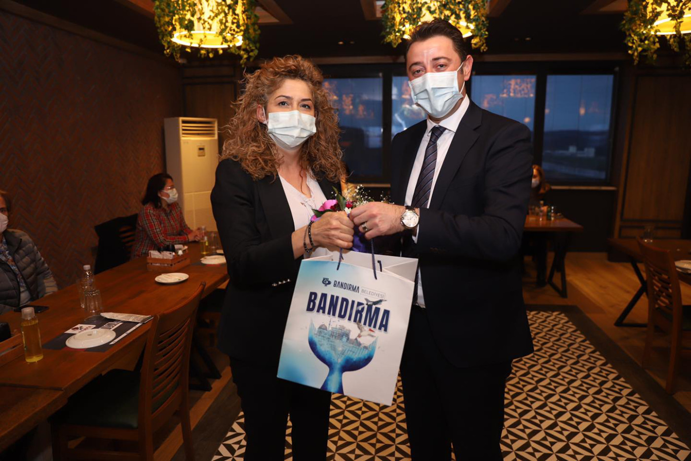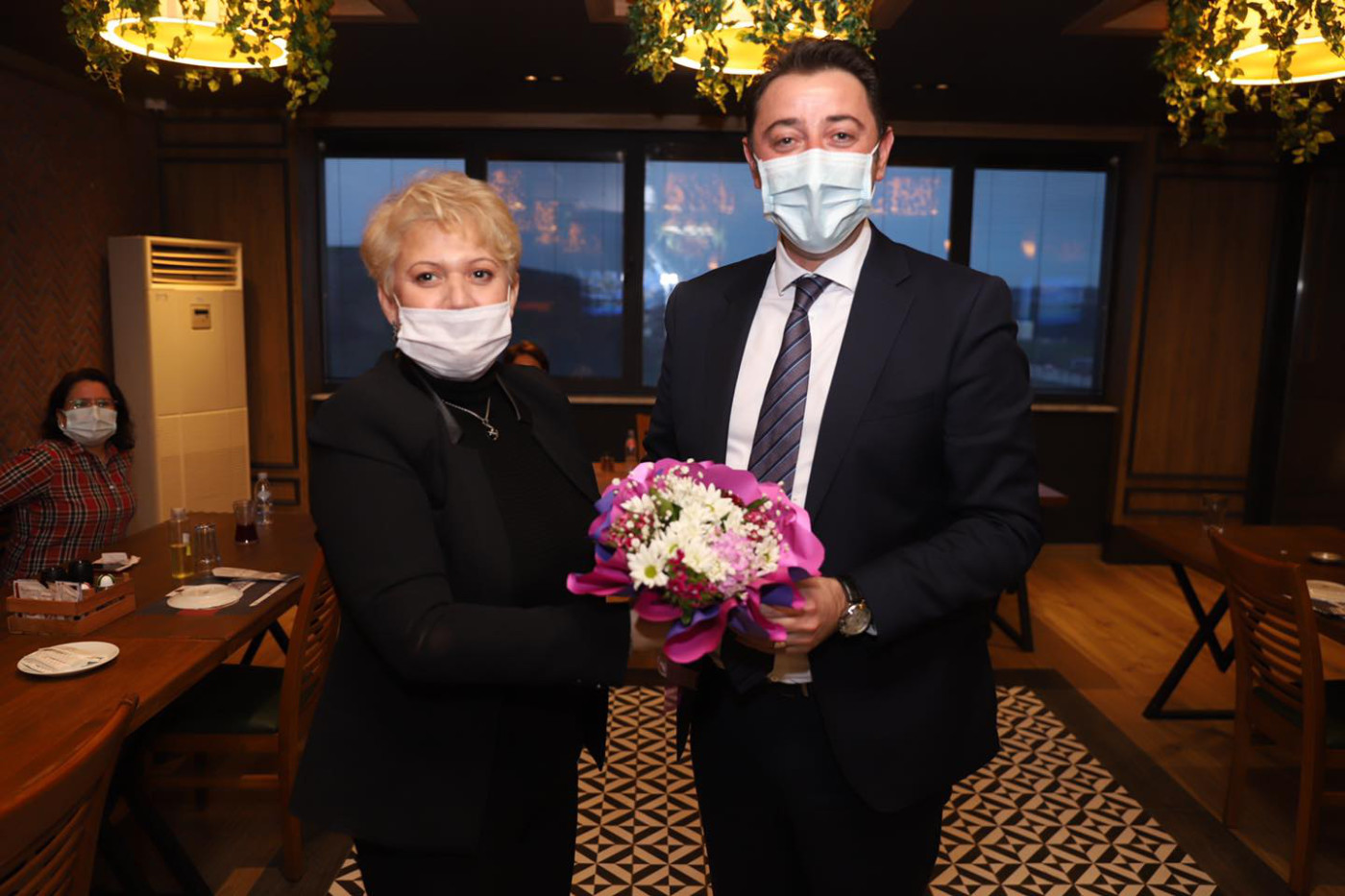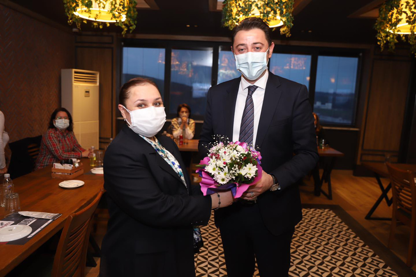 BAŞKAN AV. TOLGA TOSUN KADIN MECLİS ÜYELERİ VE MUHTARLARLA YEMEKTE BİR ARAYA GELDİ   Belediye Başkanı Av. Tolga Tosun 8 Mart Dünya Emekçi Kadınlar Günü etkinlikleri kapsamında Kadın Meclis Üyeleri ve Kadın Muhtarlarla yemekte bir araya geldi.   Kadın meclis üyeleri ve muhtarlara ithafen konuşan Başkan Tolga Tosun: “Ortaya koyduğumuz tüm çalışmalarda ve başarılı hizmetlerimizde sizlerin büyük emeği var. Hepinize bu gayret ve emekleriniz için teşekkür ediyorum. 8 Mart Dünya Emekçi Kadınlar Gününüz Kutlu Olsun” dedi.   Başkan Av. Tolga Tosun Yemek sonunda kadın meclis üyeleri ve kadın muhtarlara çiçek ve hediye takdim etti.