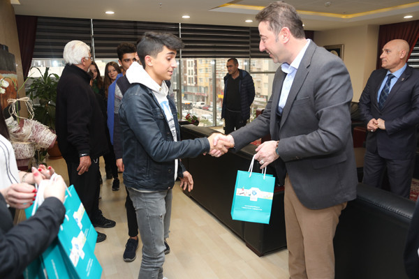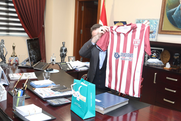 BAŞKAN AV. TOLGA TOSUN, MODERN PENTATLON ATLETLERİNE FORMA HEDİYE ETTİ   İlçe Gençlik ve Spor Müdürü Hüseyin Elüstü, Modern Pentatlon Antrenörü Mehmet Yıldırım, Eti Maden Ortaokulu Beden Eğitimi Öğretmeni Muammer Akkoyunlu ve Pentatlon atletleri, Belediye Başkanı Av. Tolga Tosun’u makamında ziyaret etti. Ziyarette Belediye Başkan Yardımcısı Metin Ok’ta yer aldı.   Pentatlon Antrenörü Mehmet Yıldırım, Modern Pentatlon’un, aynı gün içinde atıcılık, epe eskrim, serbest stil yüzme, binicilik ve 3 km. koşudan oluşan 5 yarışı içeren spor mücadelesi olduğuna değinerek; “Atletlerin Bandırmadaki Milli Eğitim Müdürlüğü’ne bağlı okullardaki öğrencileri özel yetenek testine tabi tutarak seçiyoruz. Yetenek testinden geçen öğrencilerin aileleri ile yüz yüze görüşerek tüm detayları görüşüyoruz bu şekilde ailelerinden izin alarak atletlerimizi Uluslararası standartlara uygun şekilde yetiştiriyoruz” dedi.   Hocalara ve atletlere nazik ziyaretleri için teşekkür ederek sözlerine başlayan Belediye Başkanı Av. Tolga Tosun: “Sizin gibi yetenekli sporcularımızın yetişmesi kentimiz ve ülkemiz adına çok önemli. İnşallah ileride sadece Bandırma ve Türkiye değil Uluslararası arenalarda ülkemizi en iyi şekilde temsil etme şansını yakalarsınız. Hepinizin gözlerindeki enerjiyi görebiliyorum. Sağlam kafa sağlam vücutta bulunur. Ne kadar çok spor yapar kendimizi geliştirirsek, aklımızda bir o kadar dinç olur. Bende birçok sporla ilgilendim, basketbol ve voleybol oynadım. 9-10 yaşlarında atletizmle uğraştım. Balıkesir bölgesinde 100 metrede birincilik uzun atlamada ikincilik derecelerim oldu. Hatta o dönemde madalyalarımı dönemin Belediye Başkanı Sedat Pekel’den aldım. Sizlere tavsiyem spordan kopmayın, sporu yaşam biçiminize yerleştirirseniz hem kötü alışkanlıklardan uzak kalırsınız hem da sağlıklı bir yaşam sizlerin olur. Sporu hayatınızdan eksik etmediğiniz sürece hem Belediye hem de Spor Vakfı olarak siz sporculara her zaman imkanlarımız ölçüsünde destek olmaya devam edeceğiz” dedi.   Konuşmaların sonunda Belediye Başkanı Av. Tolga Tosun ve Belediye Başkan Yardımcısı Metin Ok atletlere forma hediye etti.