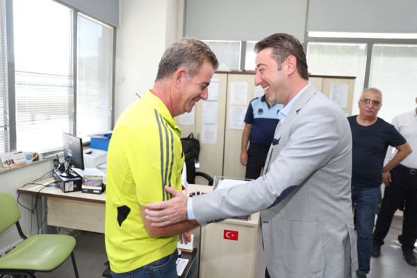 BAŞKAN AV. TOLGA TOSUN PERSONEL İLE BAYRAMLAŞTI Bandırma Belediye Başkanı Av. Tolga Tosun, Kurban Bayramı öncesinde belediye personelini görev yerlerinde ziyaret etti. Herkesle tek tek bayramlaşan ve hatırlarını soran Başkan Tolga Tosun; “Biz büyük bir aileyiz. Bandırma için en iyisini istiyor, birlikte çalışıyoruz. Özverili şekilde çalışarak emeğini ortaya koyan sizlere teşekkür ediyorum. Aileniz ve sevdiklerinizle nice bayramlar diliyorum” dedi.
