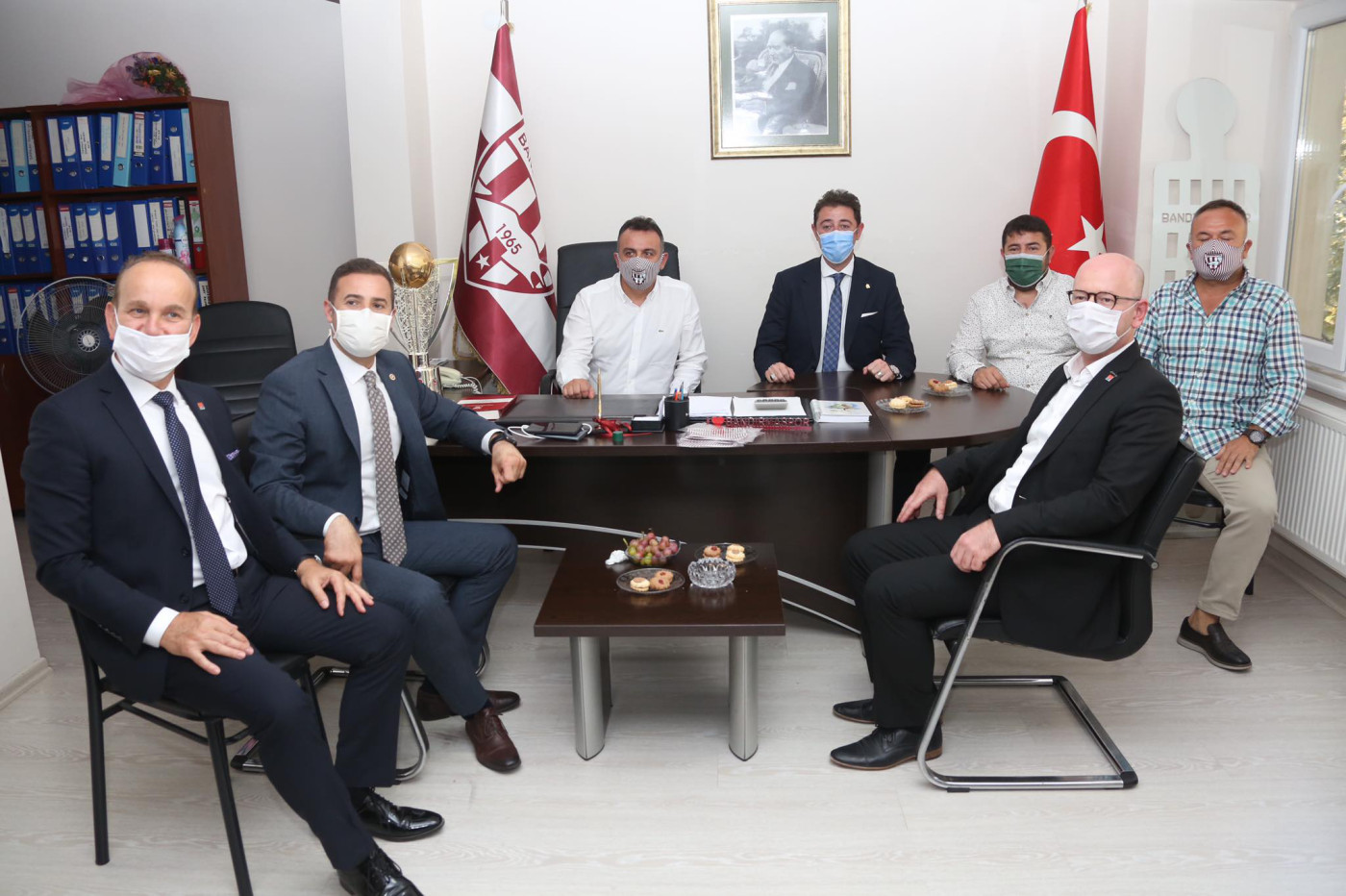 BAŞKAN BANDIRMADAKİ KURUMLARI ZİYARET ETTİ   Belediye Başkanı Av. Tolga Tosun, CHP Balıkesir Milletvekili ve Genel Başkan Yardımcısı Ahmet Akın, CHP İl Başkanı Serkan Sarı, CHP İlçe Başkanı Dr. Selim Panç, Meclis Üyeleri, İl ve İlçe Yönetim Kurulu üyeleri ile birlikte; Eti Maden fabrikası, Bandırma Ticaret Borsası, Bandırma Ziraat Odası, Bandırma Esnaf ve Sanatkarlar Kredi Kefalet Kooperatifi, Bandırmaspor Kulübü, Koyunculuk Araştırma Enstitüsünü ziyaret etti.