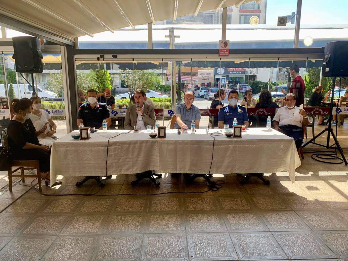BAŞKAN DİN GÖREVLİLERİ VE MUHTARLAR İLE BİRARAYA GELDİ   Belediye Başkanı Av. Tolga Tosun Kırsal ve Merkez mahallelerde görev yapan din görevlileri ve muhtarlarla bir araya geldi. Gerçekleştirilen toplantı ile ilgili bilgi veren Başkan Av. Tolga Tosun: “Kırsal ve Merkez Mahallelerimizde görev yapan din görevlilerimiz ve tüm muhtarlarımızla Belediyemize ait Çamlık Kafede sosyal mesafe ve hijyen kurallarına uyarak üç seans halinde toplandık. Kaymakamımız Günhan Yazar, Jandarma Komutanımız ve İlçe Emniyet Müdürümüzün katıldığı toplantıda Devletimizin Covid-19 ile ilgili aldığı tedbirler ve kısıtlamalarla ilgili bilgilendirmelerde bulunduk. Bu zor günleri hep birlikte mücadele ederek ve kurallara uyarak atlatacağız. Bu konuda herkesi daha duyarlı olmaya davet ediyorum” dedi.