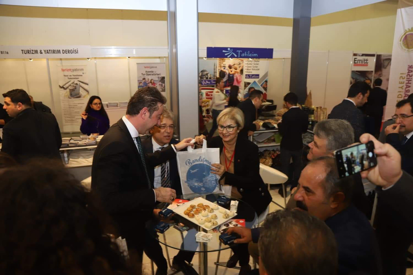 BAŞKAN TOLGA TOSUN, ADANA VE GAZİANTEP BÜYÜKŞEHİR BELEDİYE BAŞKANLARIYLA BİR ARAYA GELDİ   Belediye Başkan Av. Tolga Tosun, Büyükşehir Belediye Başkanı Yücel Yılmaz, Erdek Belediye Başkanı Hüseyin Sarı, Edremit Belediye Başkanı Selman Hasan Arslan, Ayvalık Belediye Başkanı Mesut Ergin ve Gömeç Belediye Başkanı Mehmet İrem Himam ile bir araya gelerek organizasyonla ilgili görüş alışverişinde bulundu. Belediye Başkanlarından oluşan heyet daha sonra fuar kapsamında yer alan Adana, Gaziantep, Nevşehir gibi şehirlerin standlarını ziyaret ederek Belediye Başkanlarıyla bir araya geldi.   Başkan Tolga Tosun; Adana Büyükşehir Belediye Başkanı Zeydan Karalar ve Gaziantep Büyükşehir Belediye Başkanı Fatma Şahin ile bir süre sohbet ederek Bandırma tanıtımlarının yer aldığı yayın ve ürünlerden kendilerine hediye etti.