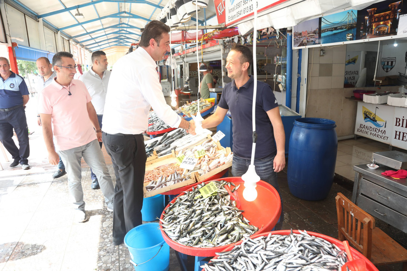 Belediye Başkanı Av. Tolga Tosun, yeni başlayan balık avı sezonuyla birlikte Balıkçı Esnafını ziyaret ederek hayırlı işler diledi.  15 Nisan ‘da başlayan ve 01 Eylül itibariyle sona eren av yasağının ardından Bandırma Balıkçı Hali’nde tezgahlarda balık bolluğu artmış oldu. Yeni sezon ile birlikte iş yoğunluğu artan Balıkçı esnafını tezgahlarının başında ziyaret eden Başkan Tolga Tosun hayırlı işler dileklerinde bulundu. Başkan Tolga Tosun ayrıca vatandaşlarla da bir araya gelerek sohbet etti.