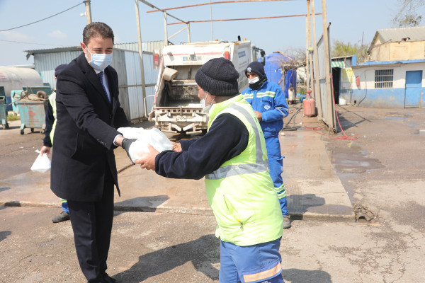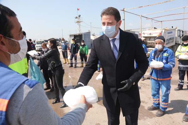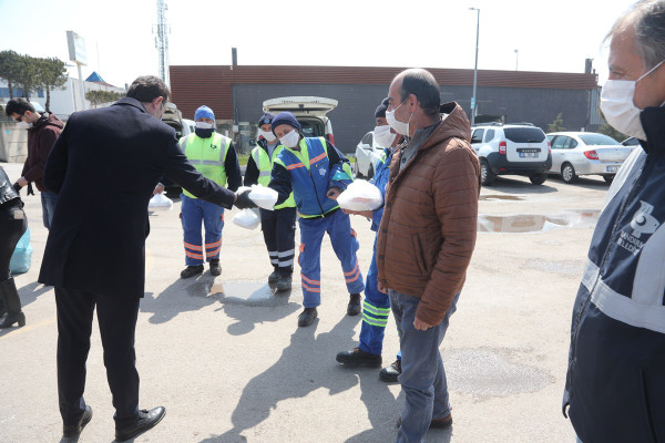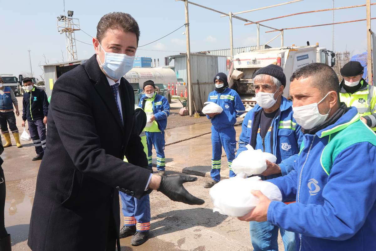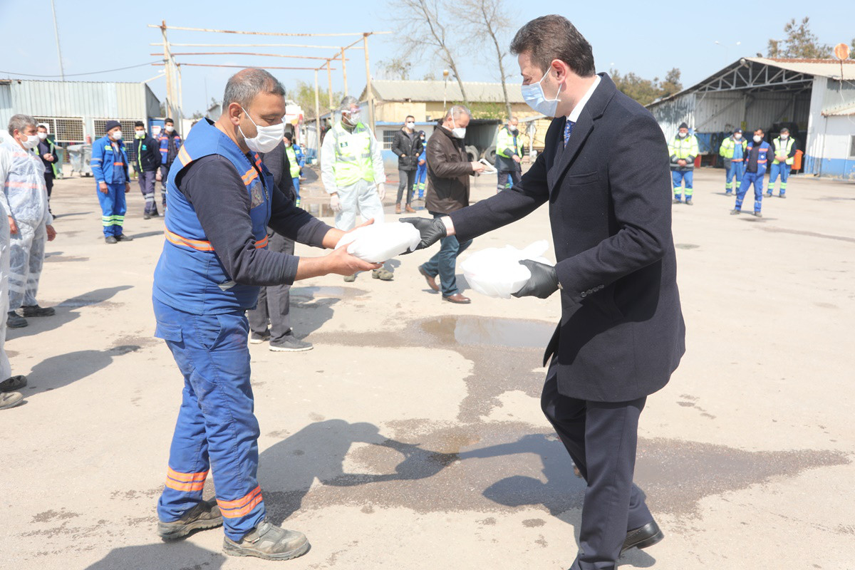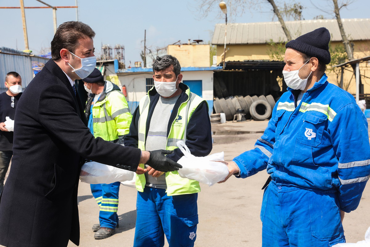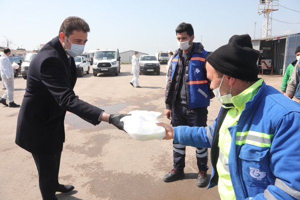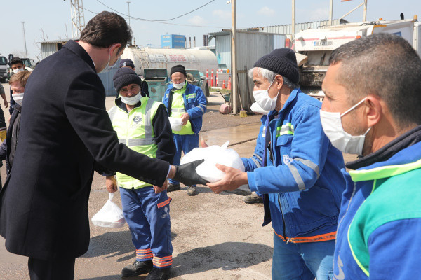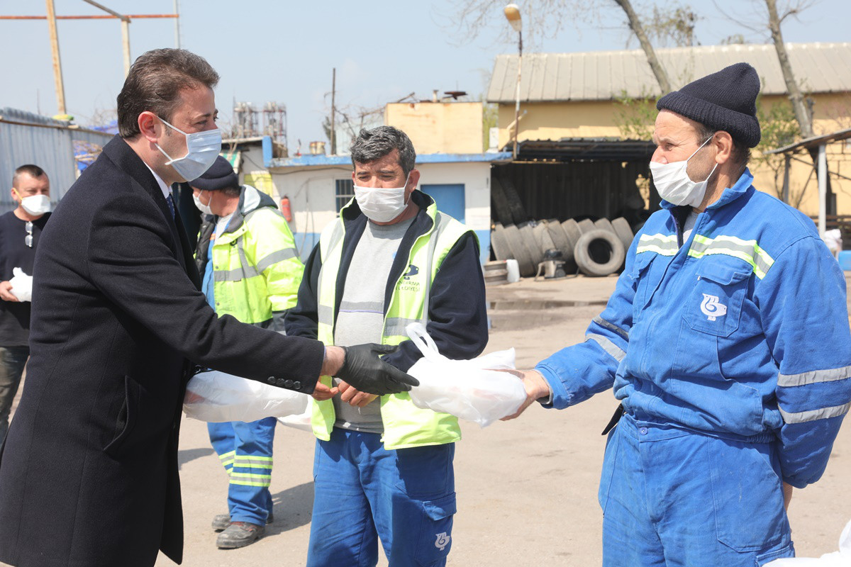 BAŞKAN TOLGA TOSUN, İLAÇLAMA VE DEZENFEKTAN EKİPLERİNE TEŞEKKÜR ETTİ. Belediye Başkanı Av. Tolga Tosun, ilaçlama ve dezenfektan ekibiyle bir araya gelerek yoğun ve özverili çalışmalarından dolayı kendilerine teşekkür etti. Covid-19 salgınıyla mücadele çalışmaları kapsamında Sağlık ve Temizlik İşleri Müdürlüğü ekiplerinden oluşturularak salgının ülkemizde görüldüğü ilk günden bu yana tüm kent genelinde yoğun bir çalışma gerçekleştiren ilaçlama ve dezenfektan ekibini ziyaret eden Başkan Tolga Tosun, bu süreçte gece gündüz demeden özveriyle çalışan ekiplere kumanya dağıtımı gerçekleştirerek teşekkür etti. Belediye Şantiyesinde ekiplerle bir araya gelen Başkan Tolga Tosun: “Ülkemiz ve tüm dünya şu an bir salgının yarattığı olumsuzlukları en aza indirgemeye çalışıyor. Dünyanın her bir yerinde salgınla mücadele etmek adına çeşitli önlemler ve çalışmalar yapılıyor. Bizler de salgının ülkemizde görüldüğü ilk andan itibaren hiç zaman kaydetmeden kentimizde bir dizi tedbirler alarak hijyen ve dezenfektan çalışmalarımızı yerine getirdik. Bunun birlikte halk sağlığı ve salgının yayılımını en aza indirmek adına faklı birçok uygulamayı gerçekleştirdik. Bu çalışmalarımızda ön planda olarak yoğun bir çalışma ve  özveri gösteren dezenfektan ekiplerimize destek olmak amacıyla bugün bir araya geldik ve öğlen molasında çeşitli kumanyalarımızı dağıttık. Kendilerine bir kez daha özverili çalışmalarından dolayı müdüründen personeline kadar hepsine teşekkürlerimi sunuyorum” dedi.