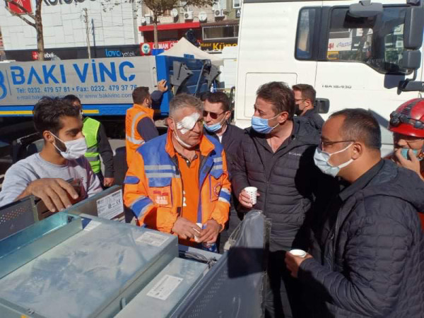 BAŞKAN TOLGA TOSUN İZMİR'E HAREKET ETTİ İzmir'de meydana gelen 6.8 şiddetindeki depremin enkaz ve kurtarma çalışmalarına destek vermek amacıyla dün yola çıkan Bandırma 911 Arama Kurtarma Ekibinin ardından bugün de Belediye Başkanı Av. Tolga Tosun, ADD Bandırma Şube Başkanı Serdar Polat ile birlikte İzmir Bayraklı'ya hareket etti. Başkan Tolga Tosun, arama kurtarma çalışmaları hakkında Bandırma ekibinden bilgi aldı.