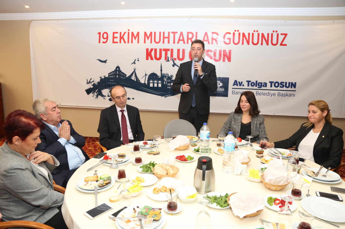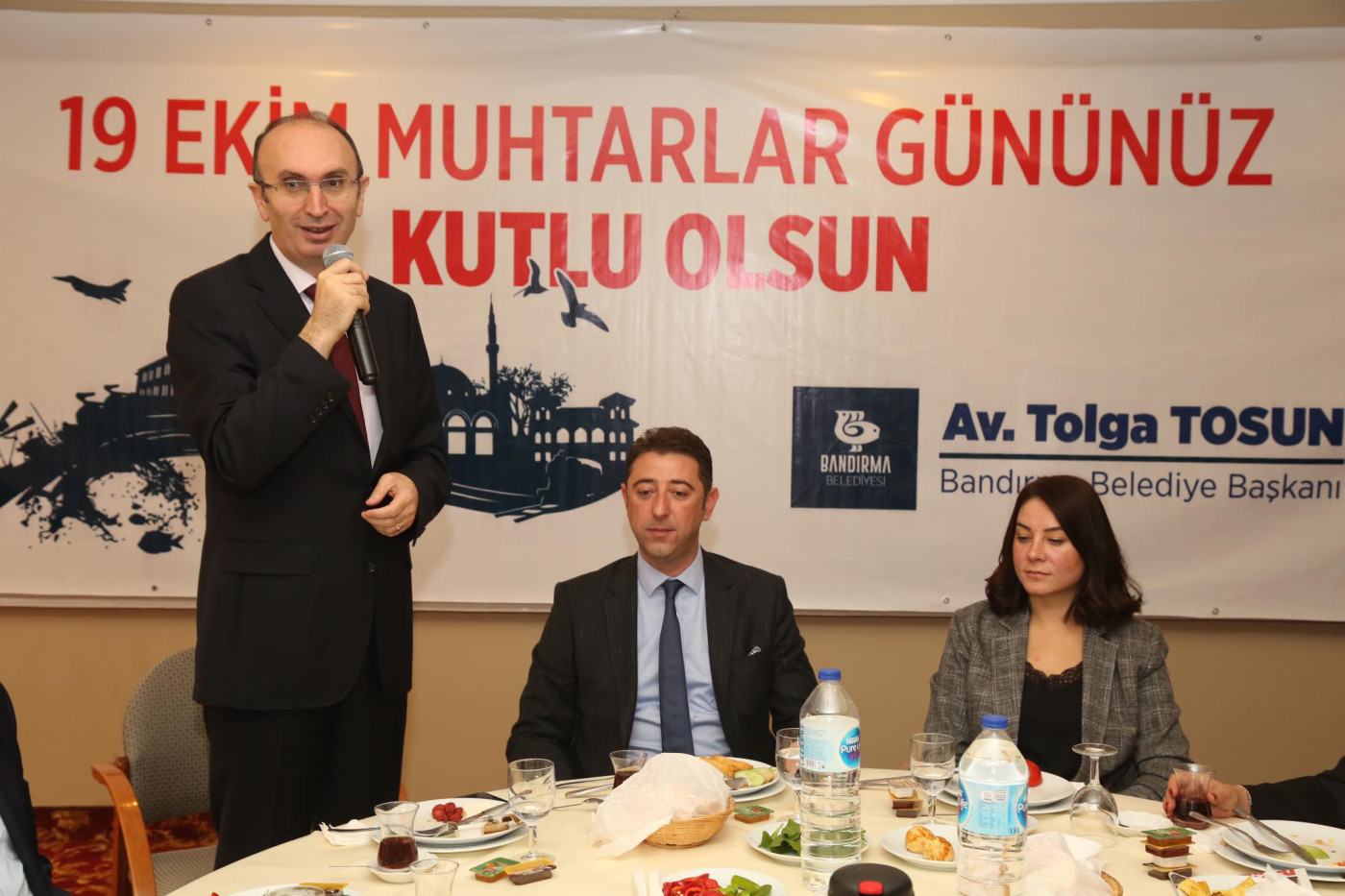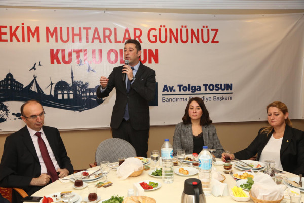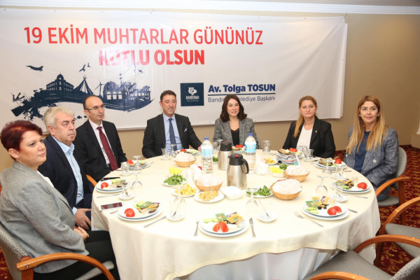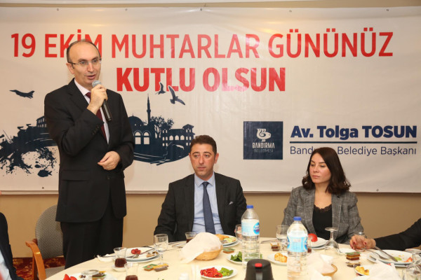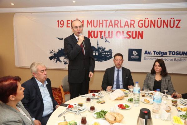Bandırma Belediyesi 19 Ekim Muhtarlar Günü dolayısıyla tüm muhtarları kahvaltıda ağırladı. Kahvaltıya İlçe Kaymakamı Günhan Yazar, Belediye Başkanı Tolga Tosun, CHP ve İYİ Parti Meclis üyeleri ile 54 Mahallenin muhtarı katıldı. Öncelikle hepinizin muhtarlar gününü kutluyorum diyen Bandırma Belediye Başkanı Av. Tolga Tosun “Göreve gelirken Belediyeyi hep beraber yöneteceğiz demiştik. O vesile ile muhtarlar ile iş ortağıyız. Bandırma’nın gelecek vizyonunu hep beraber belirleyeceğiz. Sizler mahallenizin temsilcisiniz. Bize gelmekten, sorunlarınızı iletmekten çekinmeyin. Mahallenize yapılması gereken hizmetler için bizleri yönlendirin. Bizlerde belediyenin olanakları çerçevesinde sizlere hizmet getirelim. Bize kalan bütçe açıkları var. Kalan açıkları uygulamaya soktuğumuz tasarruf tedbirleri ile kapatmaya çalışıyoruz. Bu yolda oldukça yol aldık. 1 yıl içinde bu tedbirlerin sonuçlarını hep beraber alacağız. İlk etapta yaşanılan yoğunluklar dolayısıyla görüşemediğimiz kişiler olabilir. Ancak bu yoğunluğu atlattık. Hepinize bir telefon kadar yakınız. Bandırma olarak beton görüntümüzden kurtulmak zorundayız. Bu çerçevede yaptığımız çalışmalar ile Bandırma’ya yeşil bir görünüm kazandırmak için iddialıyız. Büyükşehir ile daha uyumlu bir çalışma içinde olduk. Amacımız Bandırma’ya daha fazla hizmet sağlamaktır “dedi. İlçe Kaymakamı Günhan Yazar’da kısa bir konuşma yaparak muhtarların günlerini kutladı. Yazar “Siz muhtarlar devletin en müşfik elisiniz. Vatandaş ile devlet arasındaki köprü görevini yürütüyorsunuz. Muhtarlara olan ihtiyaç geri planda kalan komşuluklar dolayısıyla daha da artıyor. Bu vesile ile hepinizin muhtarlar gününü kutluyorum“ dedi.