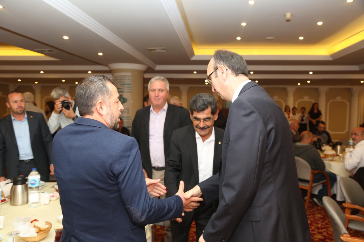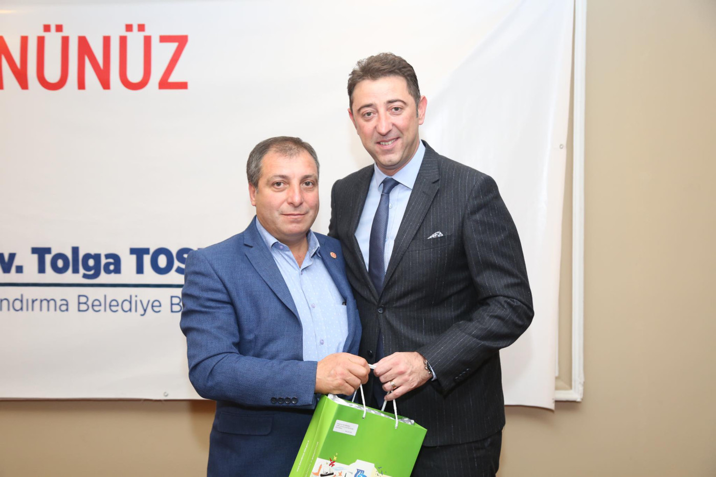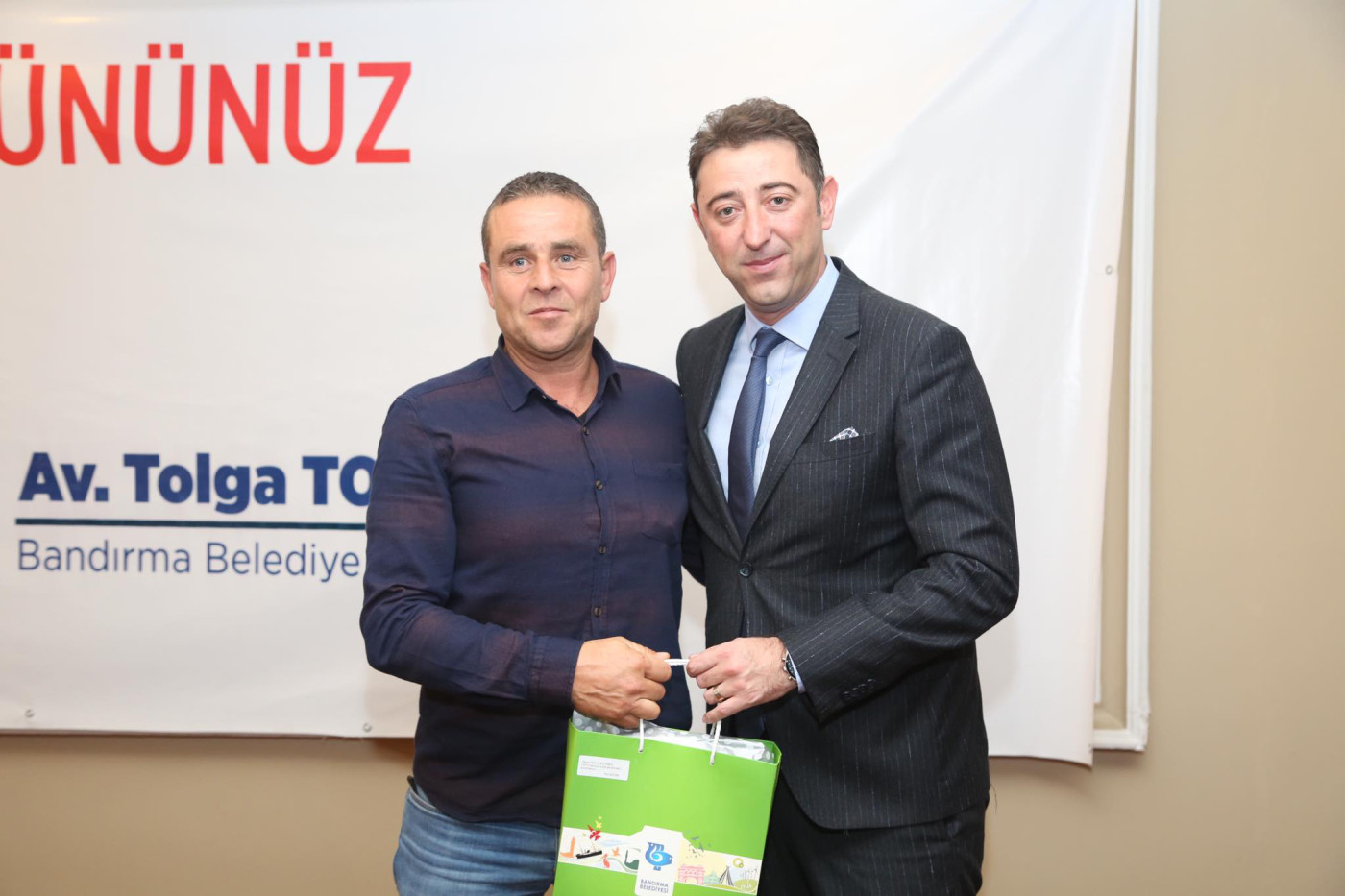 Bandırma Belediyesi 19 Ekim Muhtarlar Günü dolayısıyla tüm muhtarları kahvaltıda ağırladı. Kahvaltıya İlçe Kaymakamı Günhan Yazar, Belediye Başkanı Tolga Tosun, CHP ve İYİ Parti Meclis üyeleri ile 54 Mahallenin muhtarı katıldı. Öncelikle hepinizin muhtarlar gününü kutluyorum diyen Bandırma Belediye Başkanı Av. Tolga Tosun “Göreve gelirken Belediyeyi hep beraber yöneteceğiz demiştik. O vesile ile muhtarlar ile iş ortağıyız. Bandırma’nın gelecek vizyonunu hep beraber belirleyeceğiz. Sizler mahallenizin temsilcisiniz. Bize gelmekten, sorunlarınızı iletmekten çekinmeyin. Mahallenize yapılması gereken hizmetler için bizleri yönlendirin. Bizlerde belediyenin olanakları çerçevesinde sizlere hizmet getirelim. Bize kalan bütçe açıkları var. Kalan açıkları uygulamaya soktuğumuz tasarruf tedbirleri ile kapatmaya çalışıyoruz. Bu yolda oldukça yol aldık. 1 yıl içinde bu tedbirlerin sonuçlarını hep beraber alacağız. İlk etapta yaşanılan yoğunluklar dolayısıyla görüşemediğimiz kişiler olabilir. Ancak bu yoğunluğu atlattık. Hepinize bir telefon kadar yakınız. Bandırma olarak beton görüntümüzden kurtulmak zorundayız. Bu çerçevede yaptığımız çalışmalar ile Bandırma’ya yeşil bir görünüm kazandırmak için iddialıyız. Büyükşehir ile daha uyumlu bir çalışma içinde olduk. Amacımız Bandırma’ya daha fazla hizmet sağlamaktır “dedi. İlçe Kaymakamı Günhan Yazar’da kısa bir konuşma yaparak muhtarların günlerini kutladı. Yazar “Siz muhtarlar devletin en müşfik elisiniz. Vatandaş ile devlet arasındaki köprü görevini yürütüyorsunuz. Muhtarlara olan ihtiyaç geri planda kalan komşuluklar dolayısıyla daha da artıyor. Bu vesile ile hepinizin muhtarlar gününü kutluyorum“ dedi.