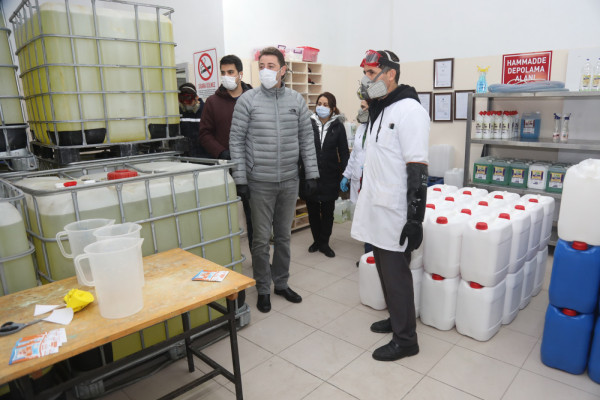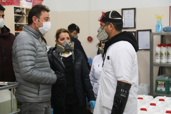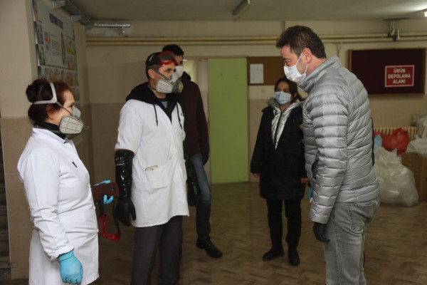 Ülkemizin ve tüm dünyanın salgınla mücadele ettiği bu dönemde Hijyen Maddesi üretimiyle halk sağlığı adına önemli bir hizmet veren Bandırma Recep Gencer Teknik ve Endüstri Meslek Lisesi’ni ziyaret eden Belediye Başkanı Av. Tolga Tosun, Okul Müdürü Aysun Karadayı ile bir araya geldi. Başkan Tolga Tosun ziyarette çalışmalar ve dezenfektan üretimi hakkında Müdür Karadayı’dan bilgi alırken okulun üretim sürecinde gereksinim duyduğu materyal ve benzeri malzeme talebi olup olmadığı konusunda görüşmelerde bulundu. Bandırma Recep Gencer MTAL’nin dezenfektan üretimiyle kentimizde ve bölgemizde önemli bir hizmeti yerine getirdiğini belirten Başkan Tolga Tosun, yer ve el dezenfektanı üretimiyle ülkemizde 8 il ve 38 okuldan biri olarak içinde bulunduğumuz bu zor süreçte önemli ve başarılı bir hizmeti yerine getirdiğini söyledi. Başkan Tolga Tosun: “Salgınla mücadele sürecinde dezenfektan üretimiyle önemli bir çalışmayı yerine getiren Bandırma Recep Gencer MTAL’ni ve Okul Müdürümüz Sayın Aysun Karadayı Hanfendiyi ziyaret ettik. Salgınla mücadele sürecinde okulun bir ihtiyacı olup olmadığı konusunda kendilerinden bilgi aldık. Burada gerçekten önemli bir çalışmayı yerine getiriyorlar. Kendilerine bu konuda destek vermeye hazırız. Bu zor süreci el ele vererek dayanışma içinde atlatacağımıza inanıyorum” dedi.