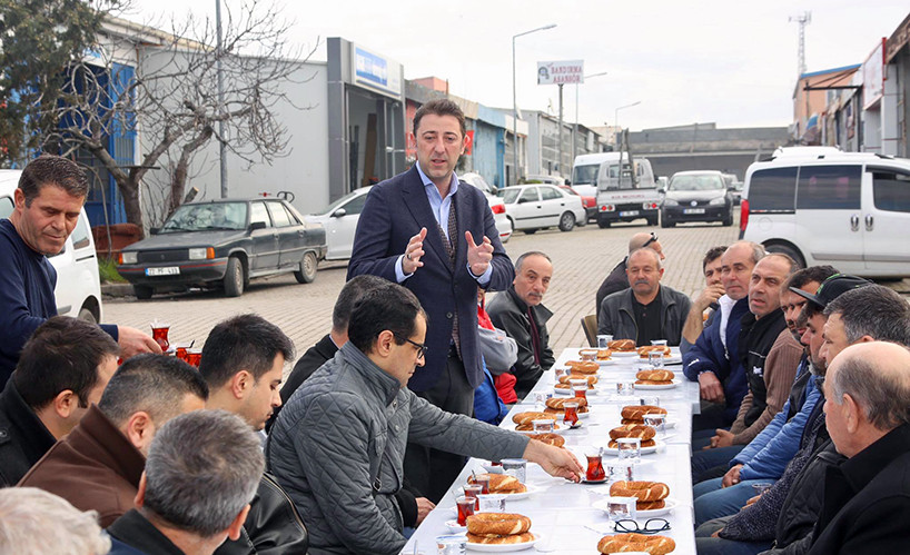 BAŞKAN TOLGA TOSUN SANAYİ ESNAFI İLE BİR ARAYA GELDİ   Belediye Başkanı Av. Tolga Tosun, daire müdürleri ile birlikte sanayi esnafı ile kahvaltıda bir araya gelerek sorunlarını dinledi.   Kahvaltı sonrası açıklama yapan Belediye Başkanı Av. Tolga Tosun: “Sanayici esnafımızla kahvaltıda buluşup ekmeğimizi bölüşüp sıcak çayımızı içtik. Kentimiz için vatandaşlarımızla bütünleşerek çözüm üretiyoruz. Ziyaretlerimizde bizden taleplerini, önerilerini not ediyor, ekibimizle değerlendirmesini yaparak ihtiyaç sırasına göre çalışmalarımıza başlıyoruz. Daha güzel bir Bandırma için birlikte çalışmaya devam edeceğiz” dedi.