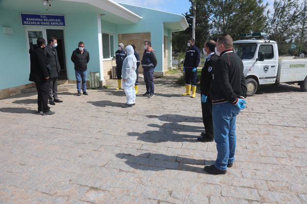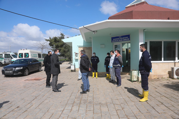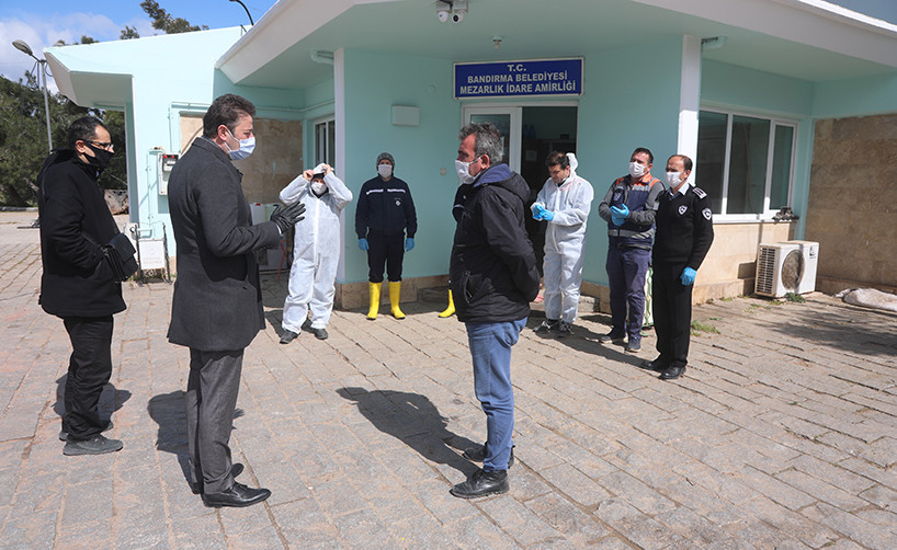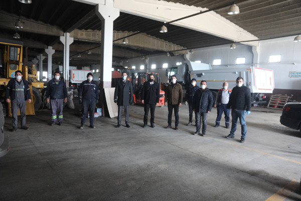 BAŞKAN TOLGA TOSUN, ŞANTİYE VE MEZARLIK İNCELEMELERDE BULUNDU   Tüm dünyada ve ülkemizde olduğu gibi salgınla mücadele çalışmaları Kentimize de tüm hızıyla devam ederken diğer yandan Belediyemizin diğer hizmet ve çalışmaları da aralıksız yerine getiriliyor. Bu çalışmalar kapsamında Belediye Şantiyesinde bulunan personeli ziyaret eden Belediye Başkanı Av. Tolga Tosun buradaki araç makine ikmal çalışmalarını incelemesinin ardından Şehir Mezarlığına geçerek ekiplerle mezarlıkta alınan tedbirler hakkında görüştü.