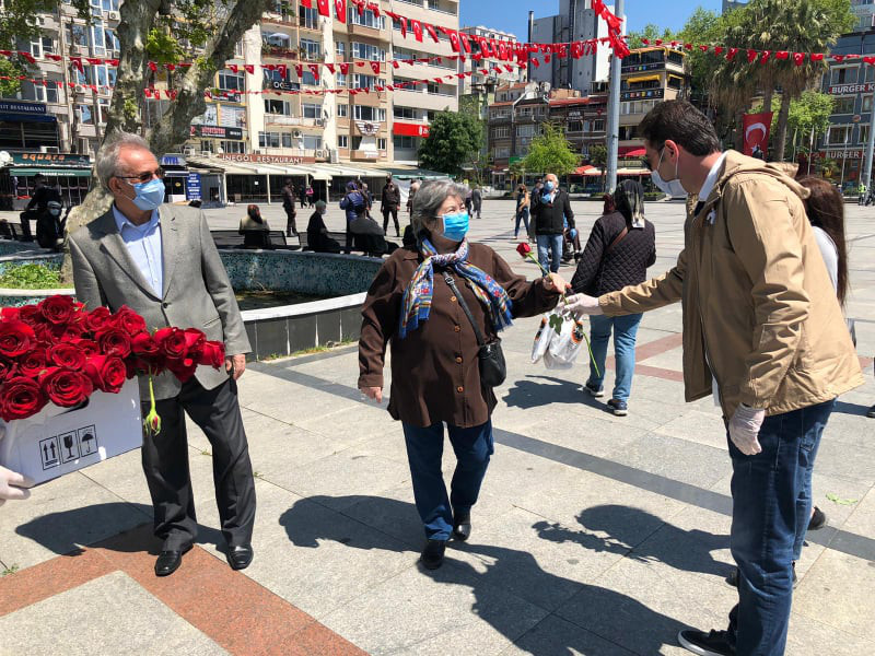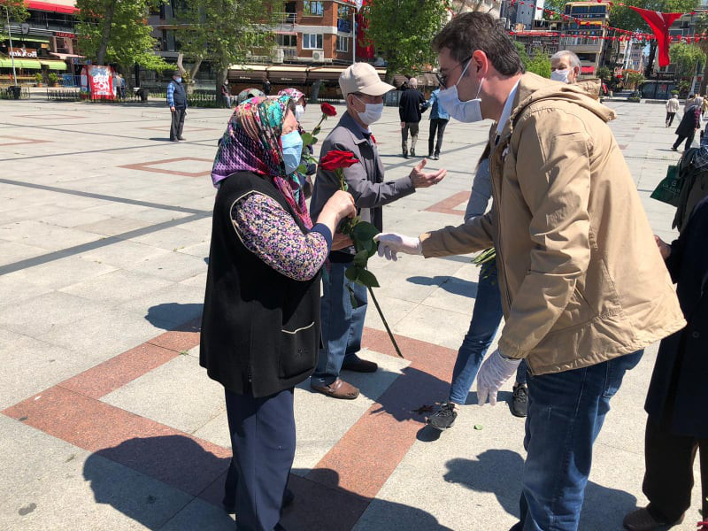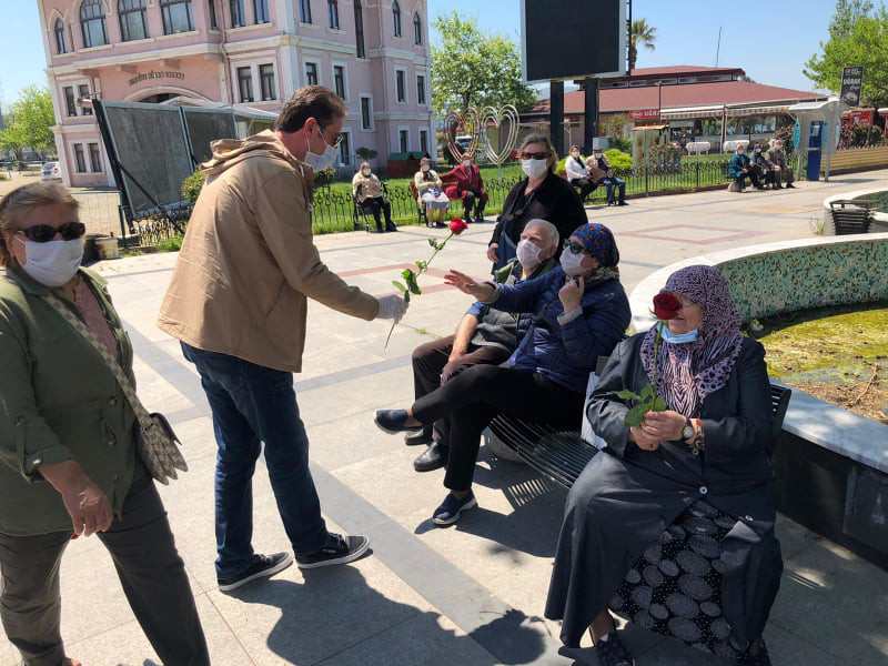 Belediye Başkanı Av. Tolga Tosun, Cumhuriyet Meydanında 65 yaş ve üstü vatandaşlarımızın anneler gününü kutlayarak çiçek ve maske dağıttı. Haftasonunda uygulanan sokağa çıkma yasağında yapılan yeni düzenlemeyle birlikte 65 yaş ve üstü vatandaşlarımızın saat 11:00 ile 15:00 arasında dışarıya çıkmalarına olanak sağlanırken, uzun süredir evlerinde olan vatandaşlarımız Cumhuriyet Meydanına gelerek güzel havanın tadını çıkarttı. Cumhuriyet Meydanındaki vatandaşlarımızı yanlız bırakmayarak ziyaret eden Başkan Tolga Tosun, bu anlamlı günde çiçek ve maske dağıtarak Anneler gününü kutladı ve vatandaslarla bir süre sohpet etti.