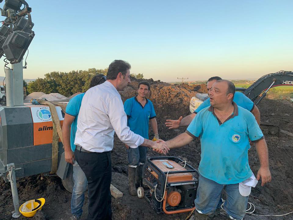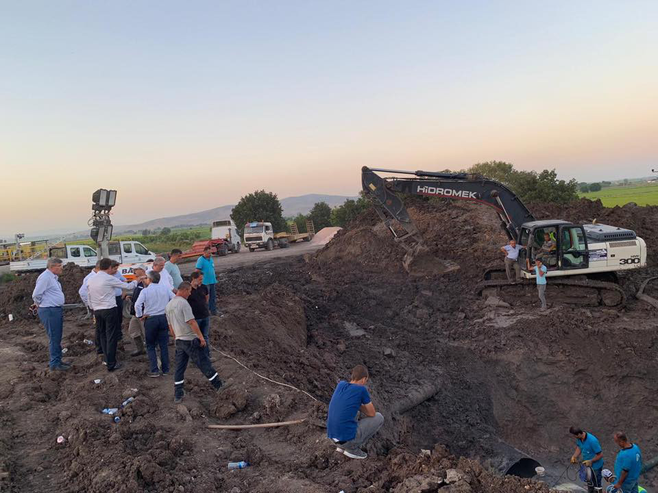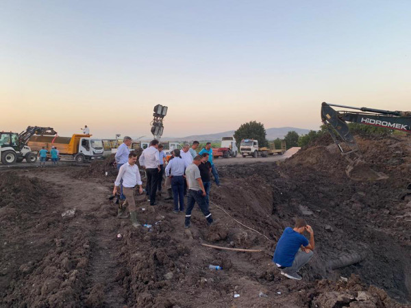 BAŞKAN TOSUN, TAMİR ÇALIŞMALARINI YERİNDE İNCELEDİ Belediye Başkanı Av. Tolga Tosun, ana boru hattında meydana gelen patlağın tamir çalışmalarını yerinde inceledi. Başkan Tosun, BASKİ ekiplerinden çalışmalar hakkında bilgi aldı. Gönen-Kumköy Regülatöründen Bandırma’yı besleyen ve uzunluğu 55 km olan isale hattında, Yenilenebilir enerji üretim firması tarafından dün yapılan inşaat faaliyetleri sırasında boru hattında patlak meydana gelmişti. BASKİ ekiplerince yürütülen çalışmaları yerinde inceleyerek yetkililerden bilgi alan Başkan Tosun, Bandırma Belediyesi olarak çalışmaların kısa sürede tamamlanması için gerekli desteği vermeye hazır olduklarını söyledi. Başkan tosun ayrıca vatandaşların su kesintisi süresince sıkıntı yaşamaması amacıyla Bandırma Belediyesi’ne ait tankerlerinde su temininde hazır tutulduğunu ve birçok mahallede su dağıtımına başlandığını söyledi. Not: Genel Fotoğraflar BASKİ Genel Müdürlüğü sayfasından alınmıştır.